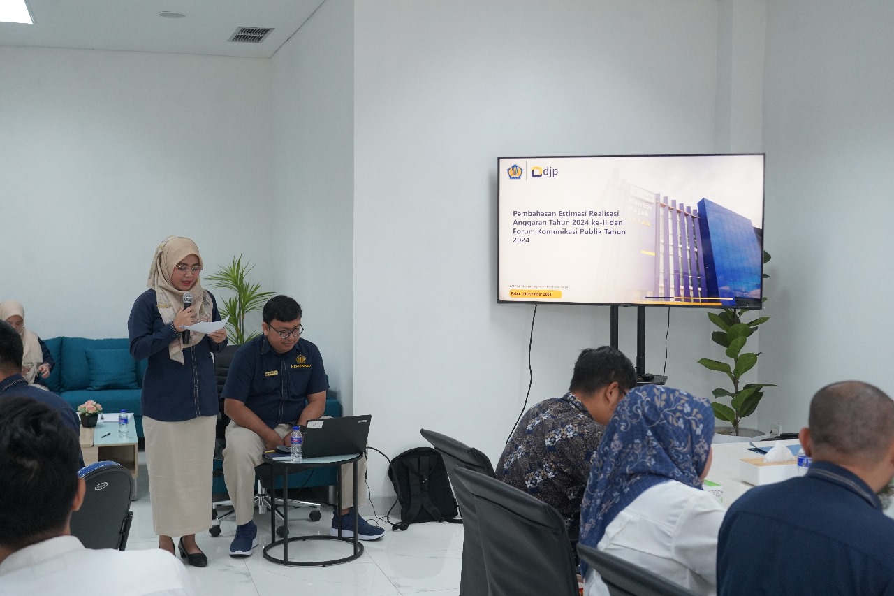 Kantor Pelayanan Pajak (KPP) Pratama Natar kembali mengadakan kegiatan Pembahasan Estimasi Realisasi Anggaran Pemerintah Daerah Tahun 2024 di Ruang Co-Working Space (CWS) KPP Pratama Natar, Jalan Lintas Sumatra KM 29.5, Haduyang, Natar, Lampung Selatan, Lampung (Rabu, 4/12).