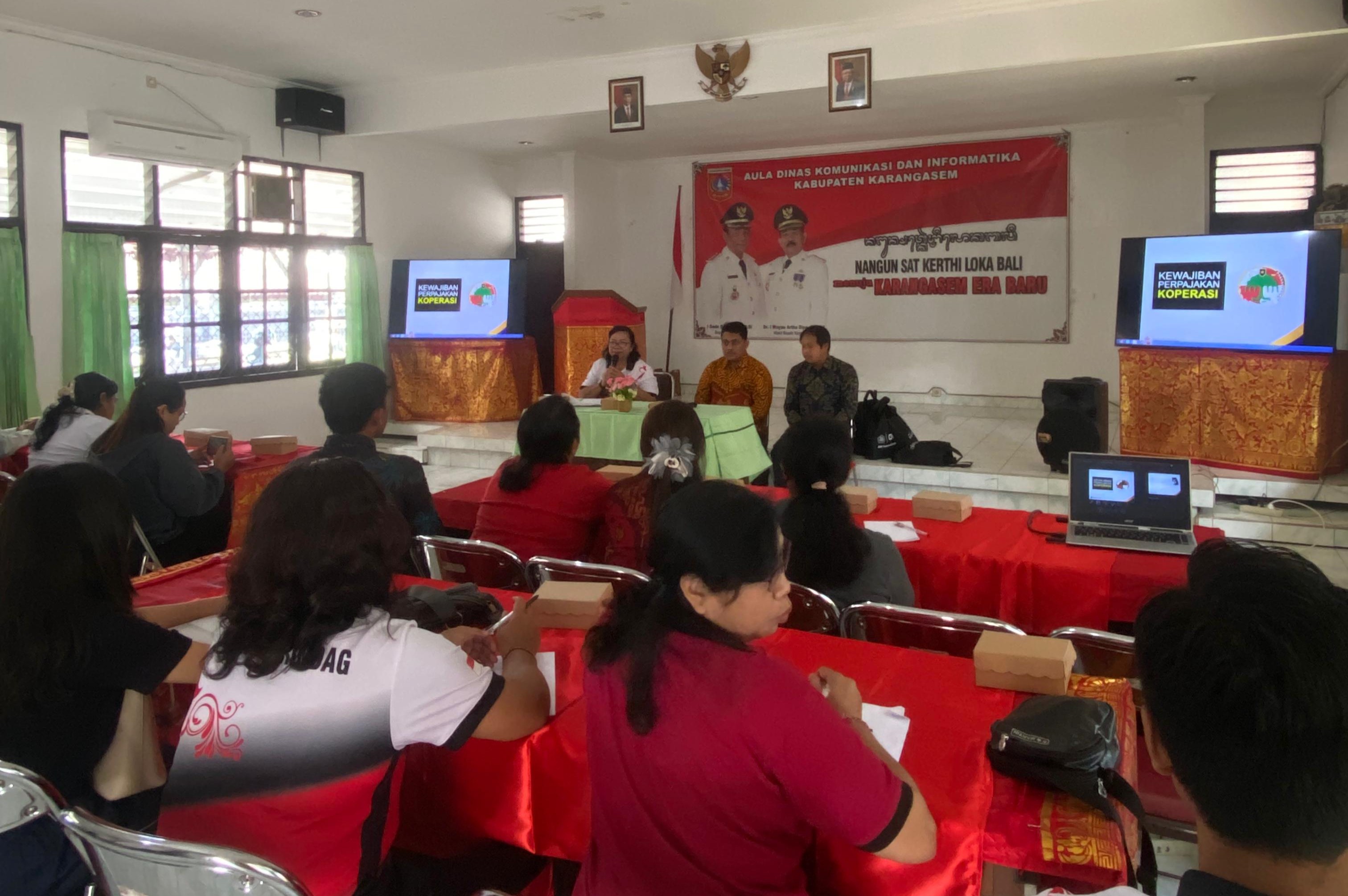 Kantor Pelayanan, Penyuluhan, dan Konsultasi Perpajakan (KP2KP) Amlapura dan Dinas Koperasi, UMKM, Perindustrian, dan Perdagangan (Diskoperindag) Kabupaten Karangasem mengadakan kegiatan edukasi perpajakan bagi wajib pajak koperasi di Aula Diskoperindag Karangasem (Jumat, 27/9).