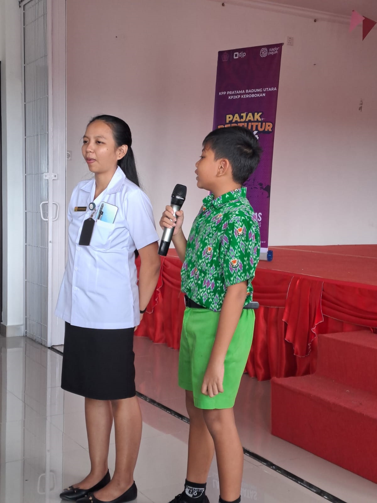 Dalam kegiatan Pajak Bertutur KPP Badung Utara tahun 2024, hadir Kepala Sekolah SD Cerdas Insan Cendikia Ni Luh Gede Gina Wulan Sari dan Pelaksana Tugas Kepala Seksi Pelayanan KPP Badung Utara Dian Agung Susanto beserta tim. Kepala Sekolah dalam sambutannya menyampaikan ucapan terima kasih dan apresiasi karena telah memilih sekolah CIS sebagai lokasi Pajak Bertutur 2024. “Pajak berperan sangat penting bagi APBN dan APBD khususnya di bidang Pendidikan,” ujar Gina. Selanjutnya adalah sambutan dari Kepala KPP badung Utara yang diwakili Plt Kepala Seksi Pelayanan, Dian Agung menyampaikan sebanyak 20 persen APBN TA 2024 atau Rp665 triliun dialokasikan untuk fungsi pendidikan.