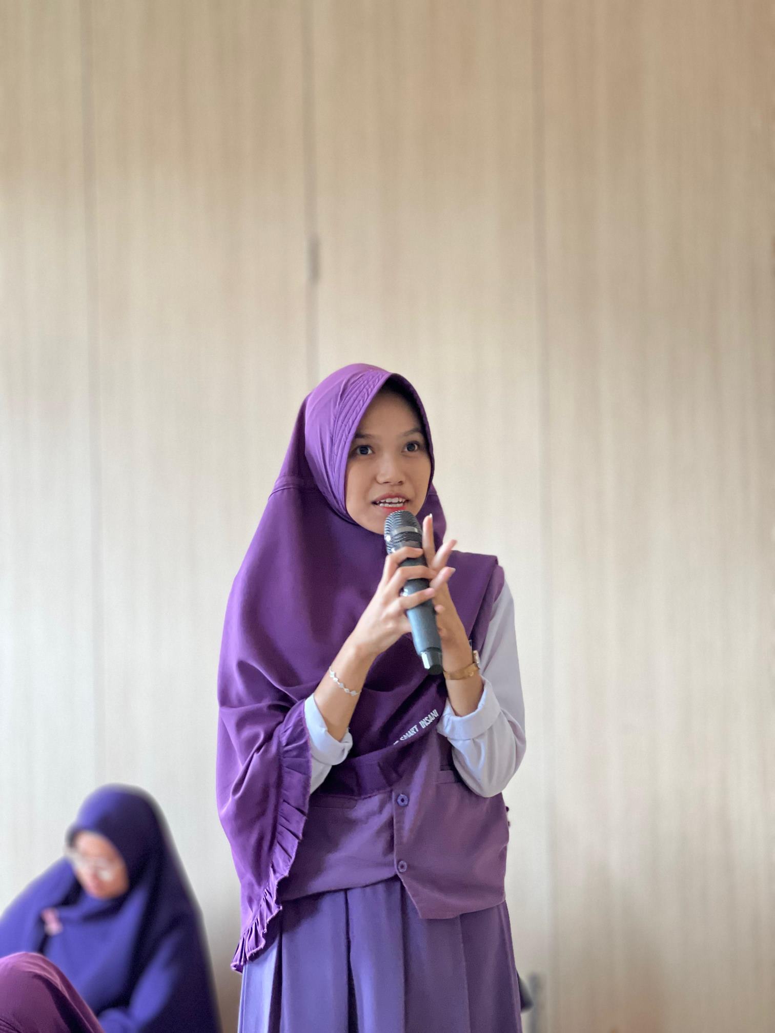Siswa siswi berpartisipasi secara aktif dalam menjawab dan bertanya saat sesi pemaparan materi oleh Asisten Penyuluh Pajak KPP Pratama Metro.