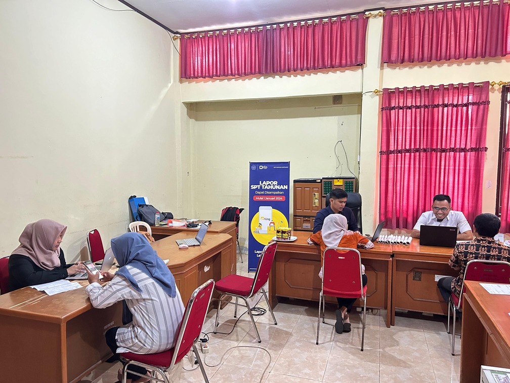 Asisten Penyuluh dan Pelaksana dari KPP Pratama Bantaeng bersinergi bersama-sama mensukseskan program kerja KPP Pratama Bantaeng dalam rangka mewujudkan kepatuhan dan kesadaran pajak wajib pajak orang pribadi di Kabupaten Bantaeng melalui penyampaian SPT Tahunan di awal tahun 2024.