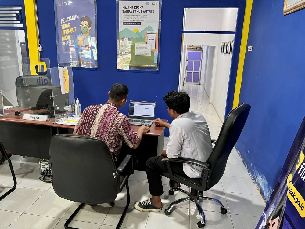 Sesampainya di KP2KP Bengkayang, Adu langsung disambut oleh petugas pengarah layanan untuk kemudian dilayani di loket helpdesk KP2KP Bengkayang.