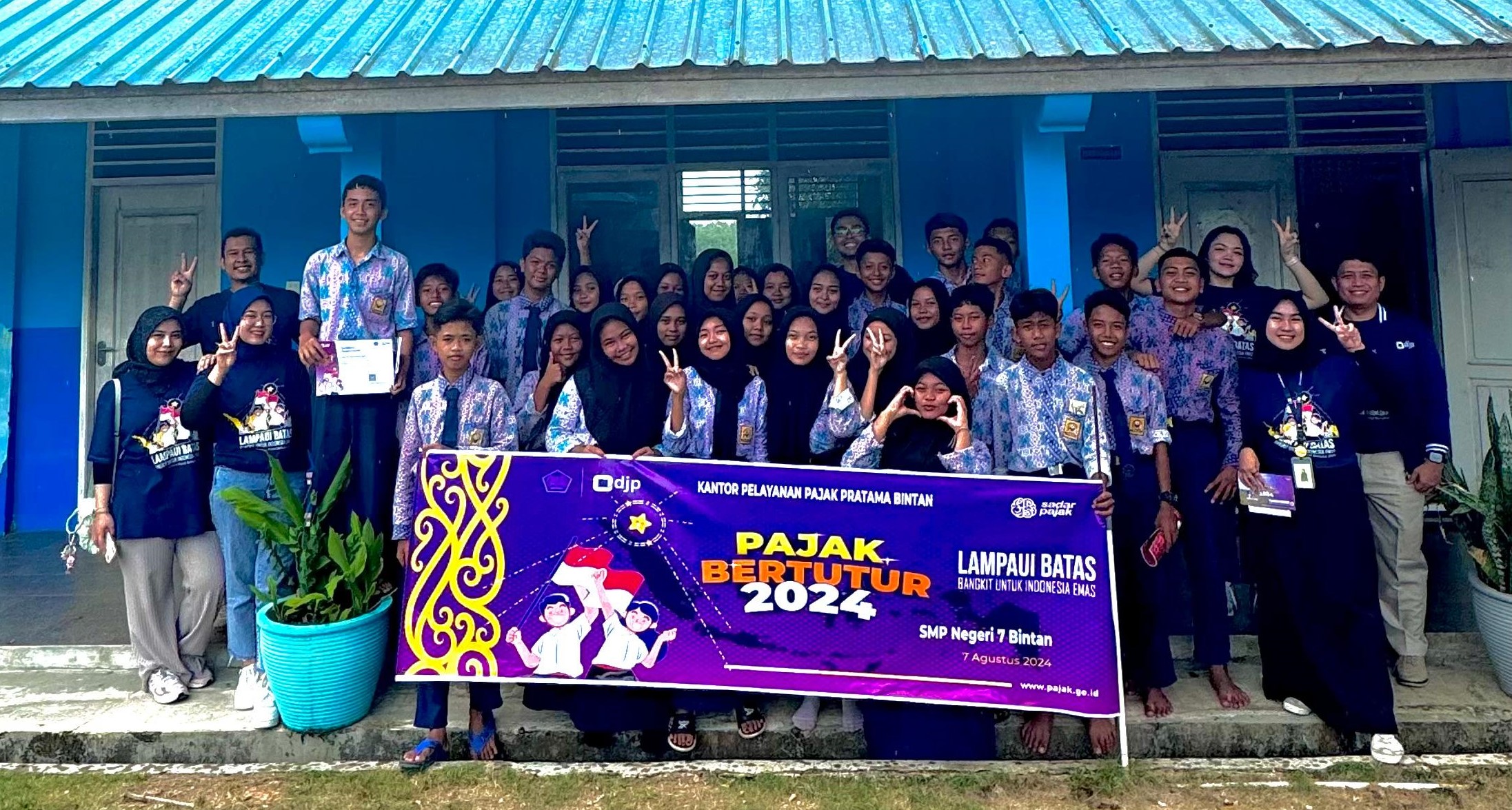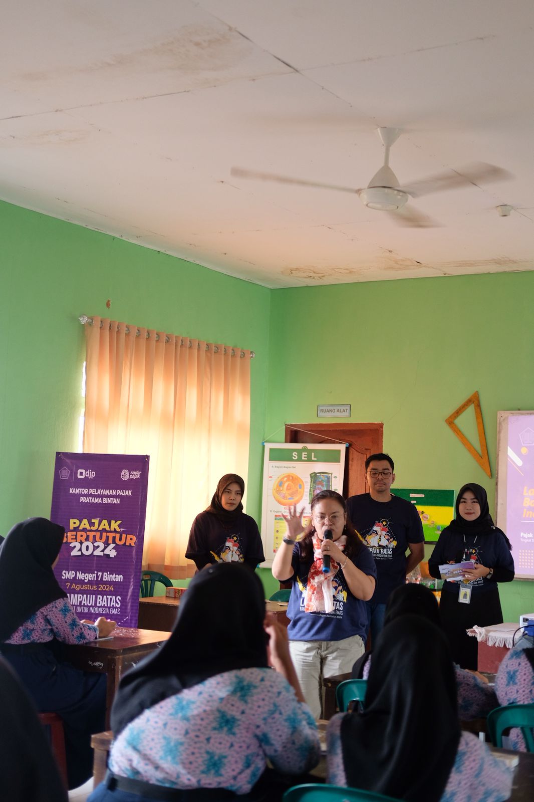Kantor Pelayanan Pajak (KPP) Pratama Bintan dan Sekolah Menengah Pertama Negeri (SMPN) 7 Bintan menggelar Pajak Bertutur (Patur) Tahun 2024 bertempat di Aula SMP Negeri 7 Jalan Selat Bintan No. 2, Pengujan, Teluk Bintan, Kepulauan Riau (Rabu, 7/8). Kegiatan yang bertujuan meningkatkan kesadaran Warga Negara Indonesia tentang fungsi dan manfaat perpajakan sejak dini ini diikuti oleh 30 siswa kelas XI.