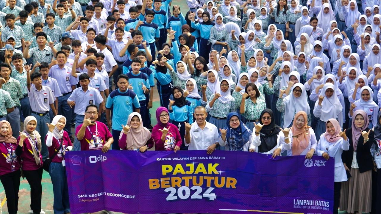 “Sebanyak 71 persen sumber pendapatan negara berasal dari pajak, dana ini diperlukan untuk persiapan Indonesia Emas di 2045,” ucap Kepala Kantor Wilayah Direktorat Jenderal Pajak (Kanwil DJP) Jawa Barat III Romadhaniah kepada peserta kegiatan Pajak Bertutur di SMA Negeri 1 Bojonggede, Kabupaten Bogor (Rabu, 7/8).