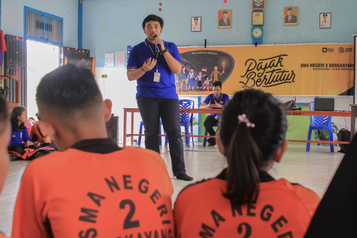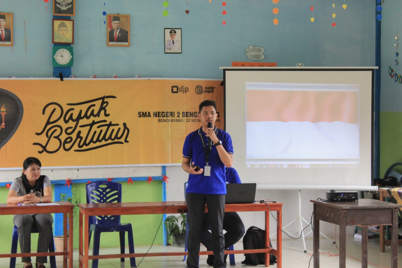 Kantor Pelayanan, Penyuluhan, dan Konsultasi Perpajakan (KP2KP) Bengkayang menyelenggarakan kegiatan Pajak Bertutur di SMAN 2 Bengkayang (Jumat, 22/11). Acara ini diadakan di aula SMAN 2 Bengkayang dan diikuti oleh lebih dari 50 siswa dari kelas 12.