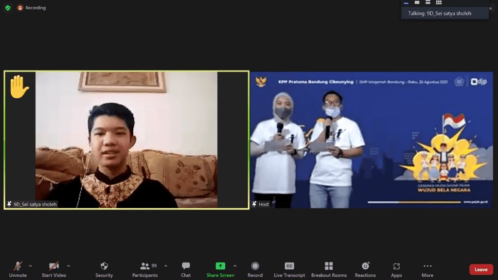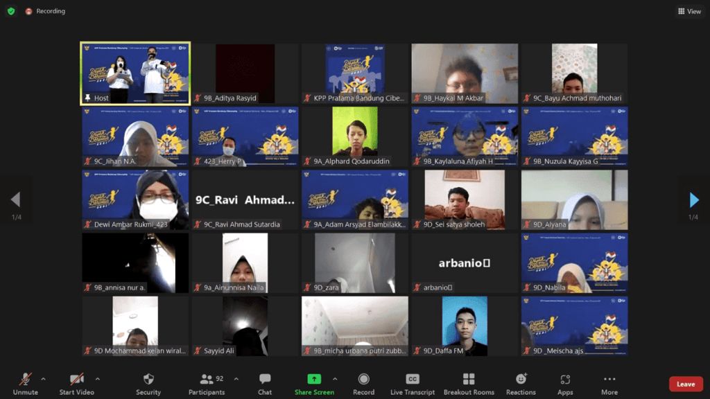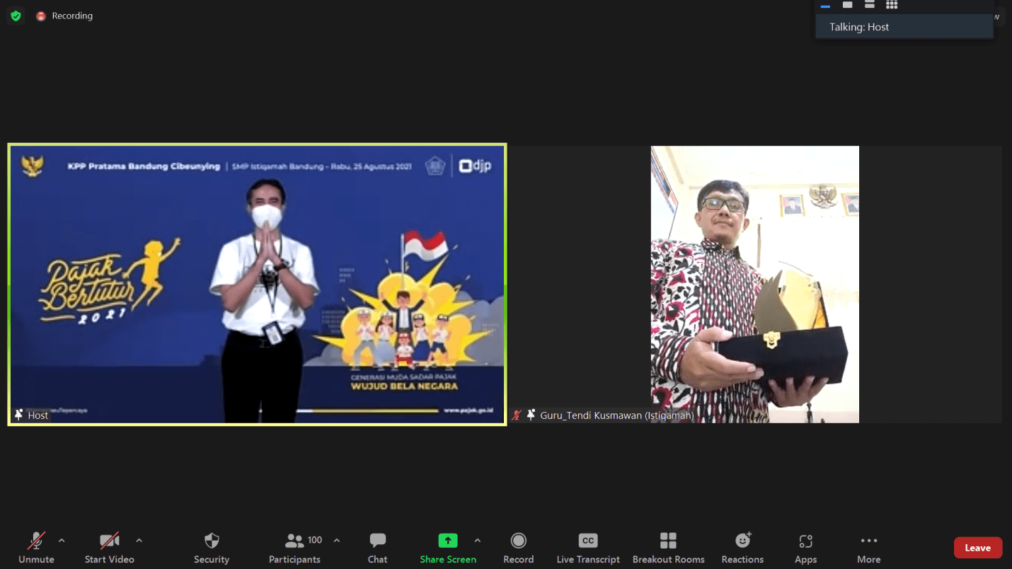 Kantor Pelayanan Pajak Pratama Bandung Cibeunying bersama dengan SMP Istiqamah Bandung menyelenggarakan kegiatan Pajak Bertutur tahun 2021 secara daring melalui Zoom Meeting di Kota Bandung (Rabu, 25/8).