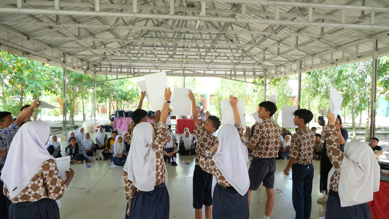 Siswa-siswi SMPN 1 Batang Kuis tidak hanya mendengarkan paparan materi, tetapi juga terlibat aktif dalam diskusi dan permainan edukatif bertema pajak. Suasana belajar dibuat interaktif dan menyenangkan sehingga siswa lebih mudah memahami peran penting pajak dalam kehidupan sehari-hari khususnya di lingkungan sekolah.