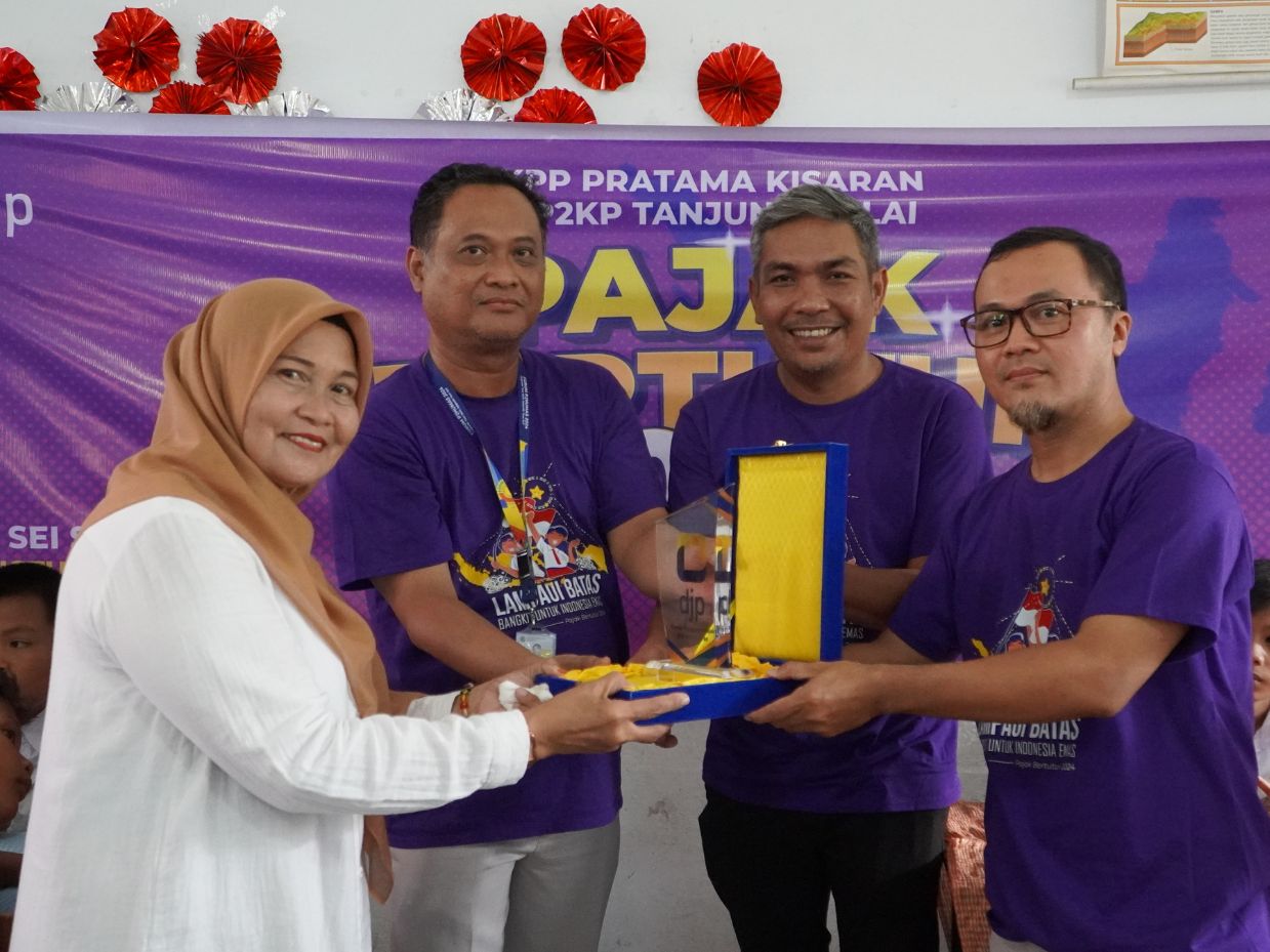 Kantor Pelayanan Pajak (KPP) Pratama Kisaran dan Kantor Pelayanan, Penyuluhan, dan Konsultasi Perpajakan (KP2KP) Tanjung Balai melaksanakan kegiatan Pajak Bertutur Tahun 2024 bersama Sekolah Dasar Negeri (SDN) 010015 Sei Serindan, Kecamatan Sei Kepayang Barat, Kabupaten Asahan (Rabu, 7/8).