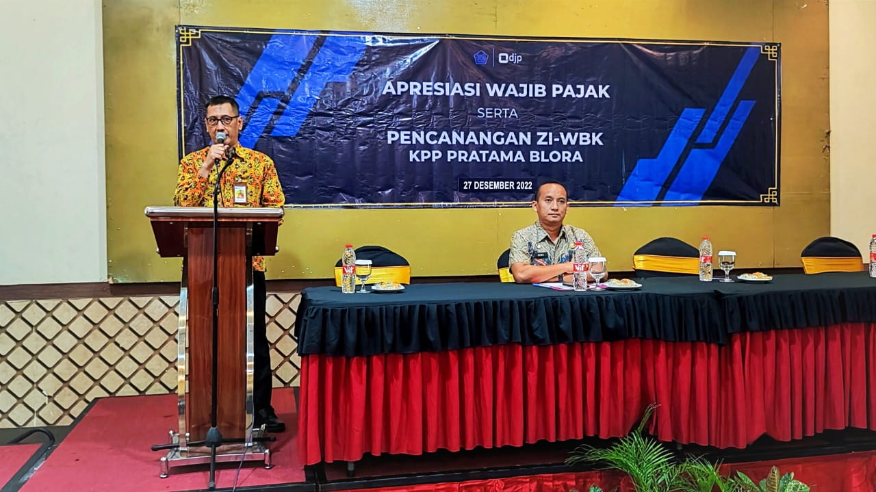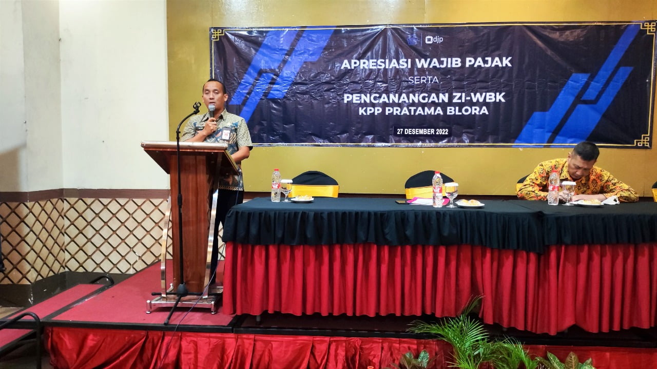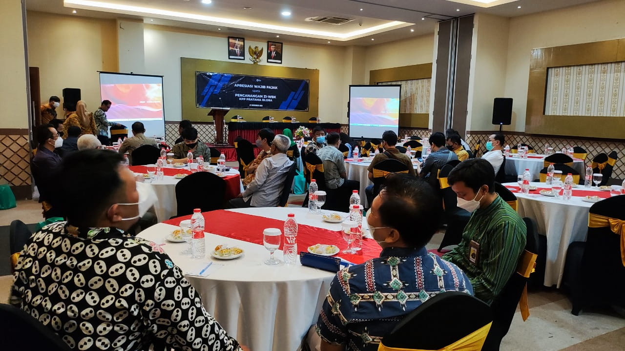 Kantor Pelayanan Pajak (KPP) Pratama Blora bekerja sama dengan Kantor Pelayanan, Penyuluhan, dan Konsultasi Perpajakan (KP2KP) Purwodadi menyelenggarakan acara apresiasi wajib pajak serta pencanangan Zona Integritas - Wilayah Bebas Korupsi (ZI-WBK) di Aula Hotel Front One Purwodadi, Jl. Gajah Mada No.89, Majenang, Kuripan, Purwodadi, Grobogan (Selasa, 27/12).