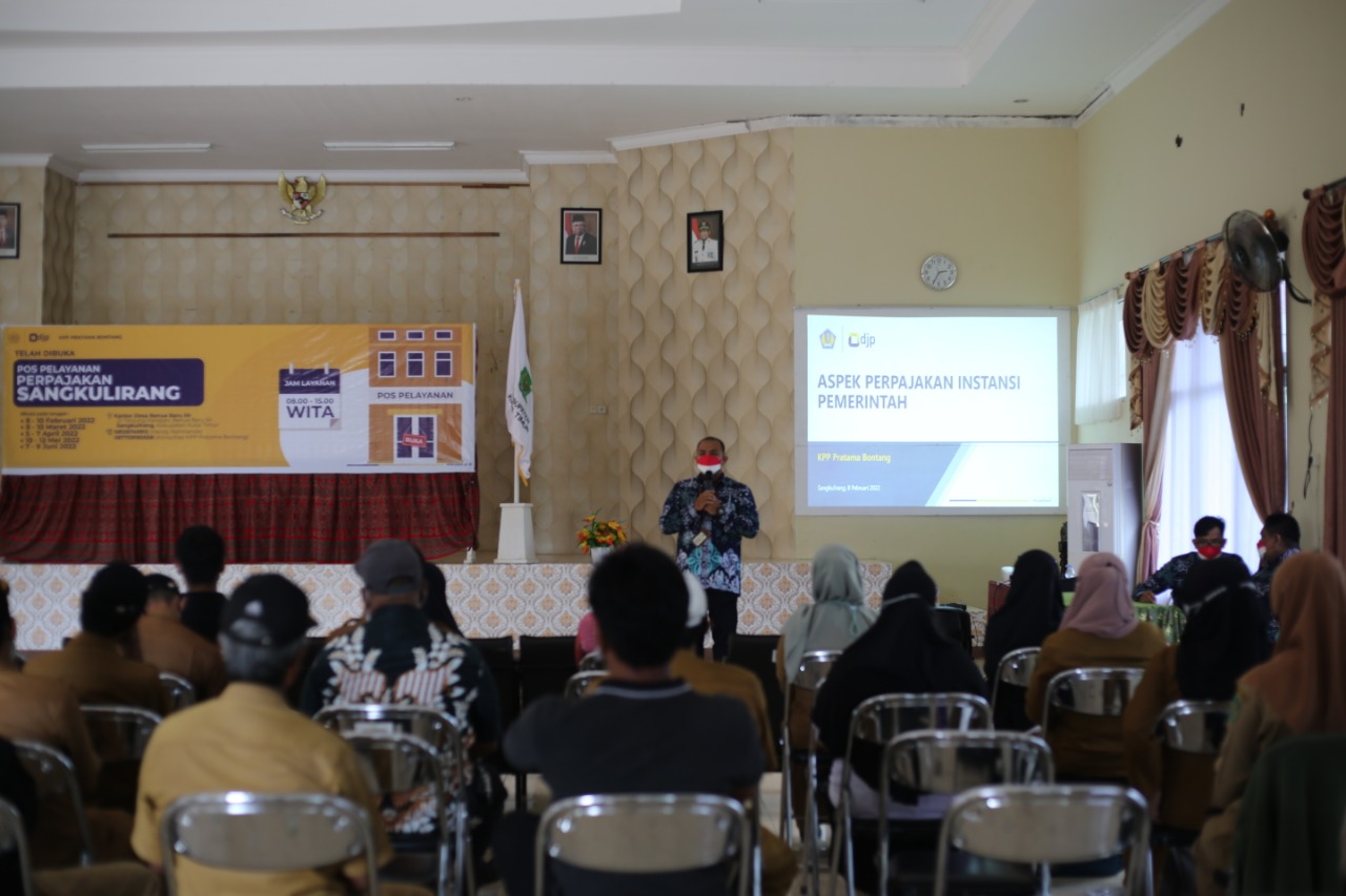 Kegiatan ini dilakukan dalam rangka Pembukaan Pos Layanan Pajak dan penggalian potensi Wajib Pajak Usaha Mikro Kecil dan Menengah (UMKM) Sangkulirang,