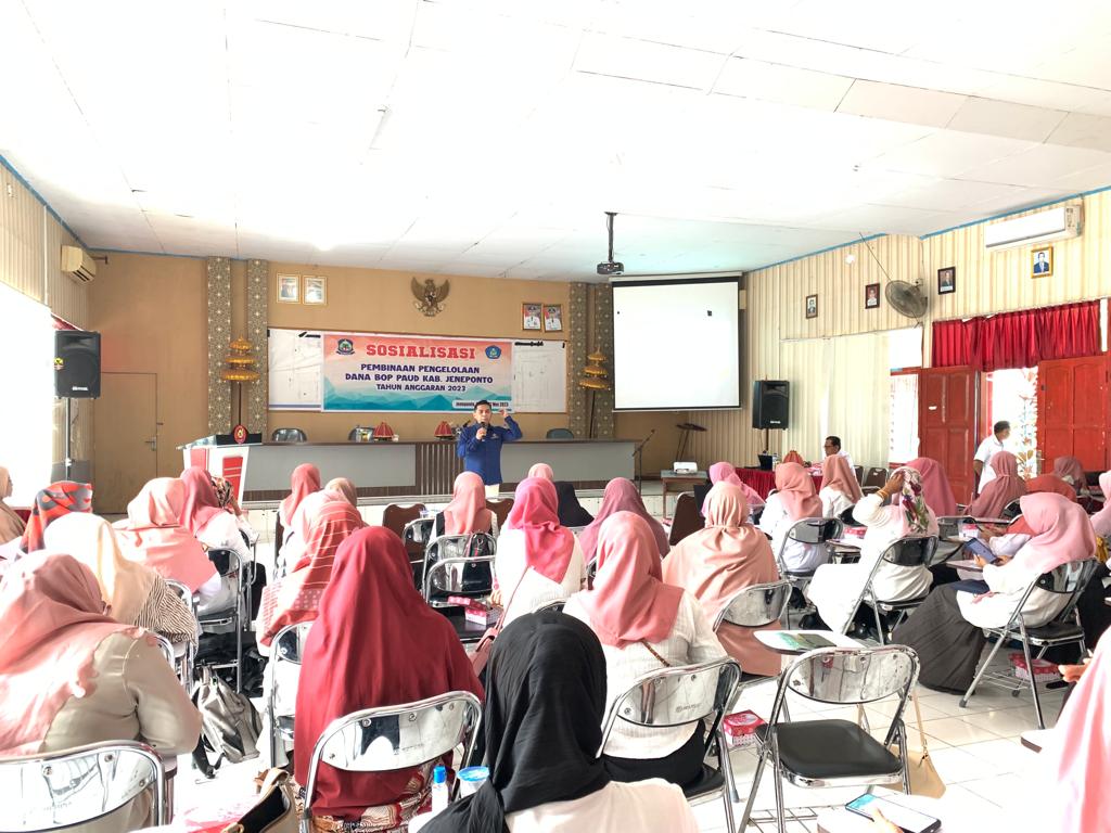 Kantor Pelayanan, Penyuluhan, dan Konsultasi Perpajakan (KP2KP) Bontosunggu mengajak Pendidikan Anak Usia Dini (PAUD) swasta maupun negeri di wilayah Kabupaten Jeneponto untuk menaati kewajiban perpajakan pada kegiatan Sosialisasi Pembinaan Pengelolaan Dana Bantuan Operasional Pendidikan (BOP) PAUD Kabupaten Jeneponto yang bertempat di Aula Panranuangta Dinas Pendidikan dan Kebudayaan Kabupaten Jeneponto (Rabu, 24/5).