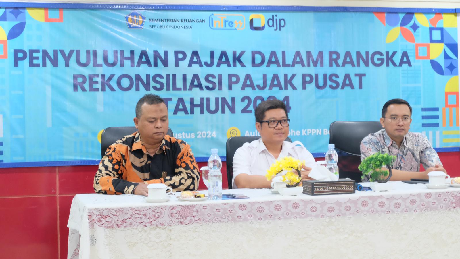 Kantor Pelayanan Pajak (KPP) Pratama Bulukumba memenuhi undangan sebagai narasumber dalam acara Rekonsiliasi Pajak Pusat Tahun Anggaran 2024 yang diadakan oleh Kantor Pelayanan Perbendaharaan Negara (KPPN) Benteng (Selasa, 20/8). Acara rekonsiliasi ini merupakan salah satu bentuk sinergi antara KPP Pratama Bulukumba, KPPN Benteng, dan Pemerintah Daerah Kabupaten Kepulauan Selayar dalam penyaluran Dana Bagi Hasil (DBH) PPh dan DBH PBB dengan memastikan kesesuaian jumlah pajak yang disetor dengan jumlah pajak yang dipungut dan/atau dipotong serta yang telah tercatat di Rekening Kas Negara yang menjadi kewajiban pemerintah daerah.
