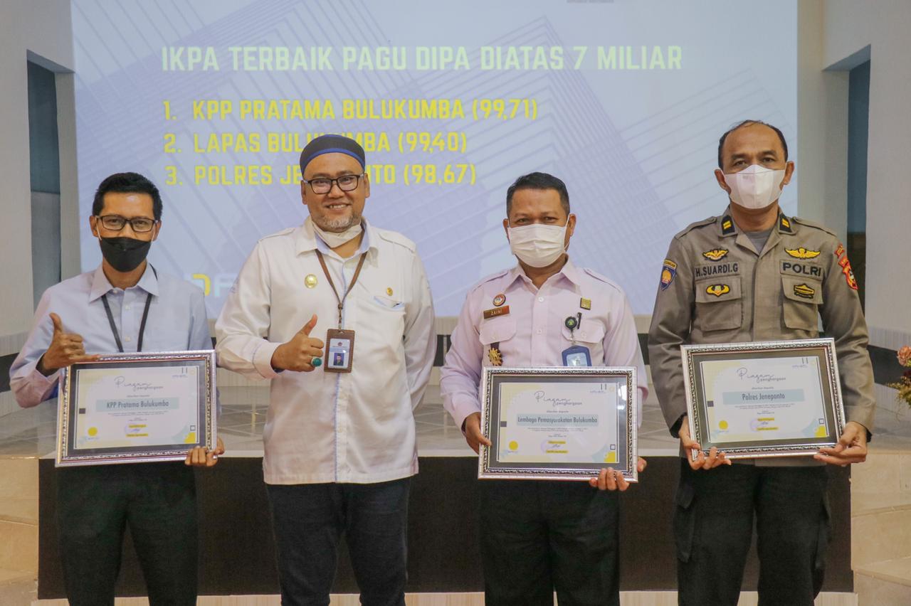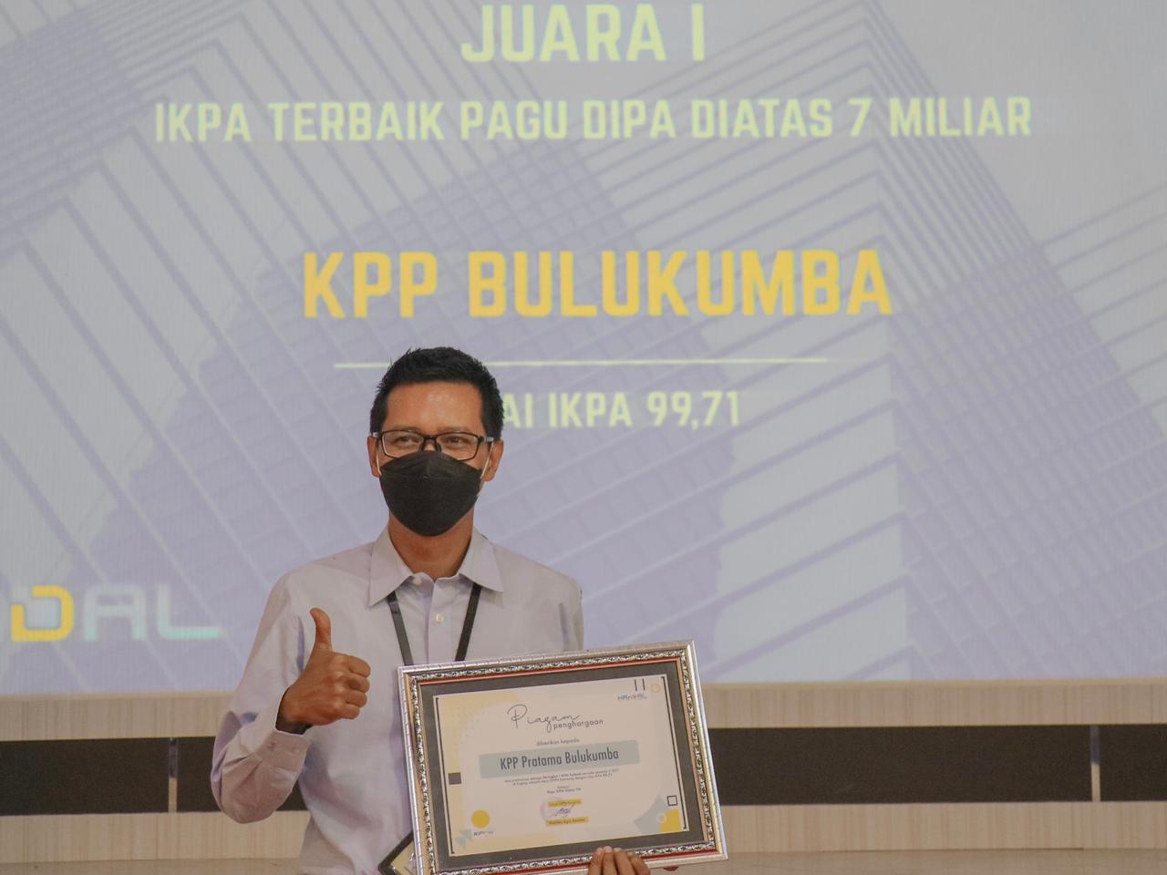 Kantor Pelayanan Pajak (KPP) Pratama Bulukumba kembali meraih penghargaan dari Kantor Pelayanan Perbendaharaan Negara (KPPN) Bantaeng sebagai kantor dengan Peringkat Pertama Indikator Kualitas Pelaksanaan Anggaran (IKPA) Terbaik Periode Semester II Tahun 2021 kategori Pagu DIPA diatas 7M di lingkup wilayah kerja KPPN Bantaeng, Kegiatan tersebut digelar di Aula KPPN Bantaeng (Rabu, 9/2).