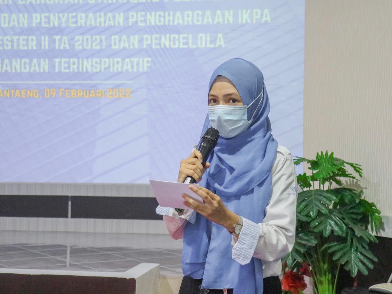Selain penyerahan penghargaan IKPA Terbaik Semester II Tahun 2021, KPPN Bantaeng juga mengadakan Sosialisasi Langkah-Langkah Strategis Pelaksanaan Anggaran Tahun Anggaran 2022. Bertempat di Aula KPPN Bantaeng, acara ini dihadiri oleh para pimpinan Satuan Kerja di wilayah kerja KPPN Bantaeng.