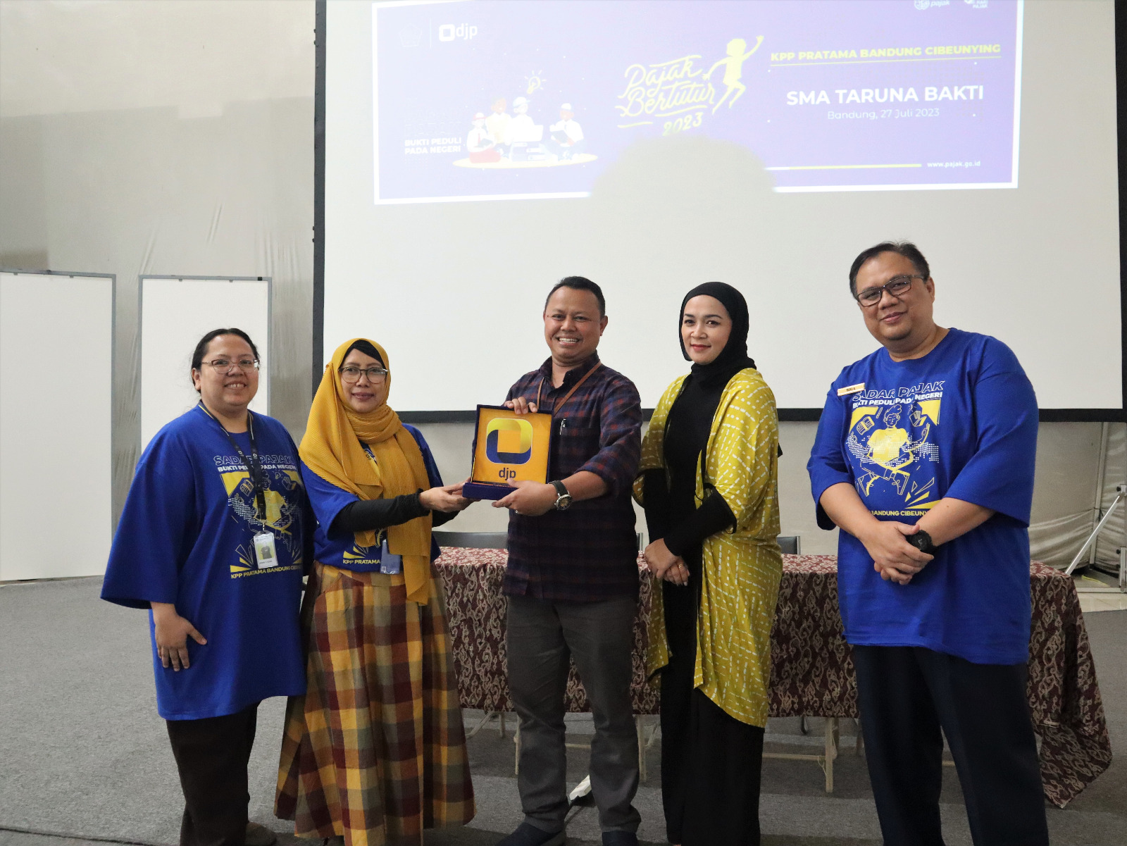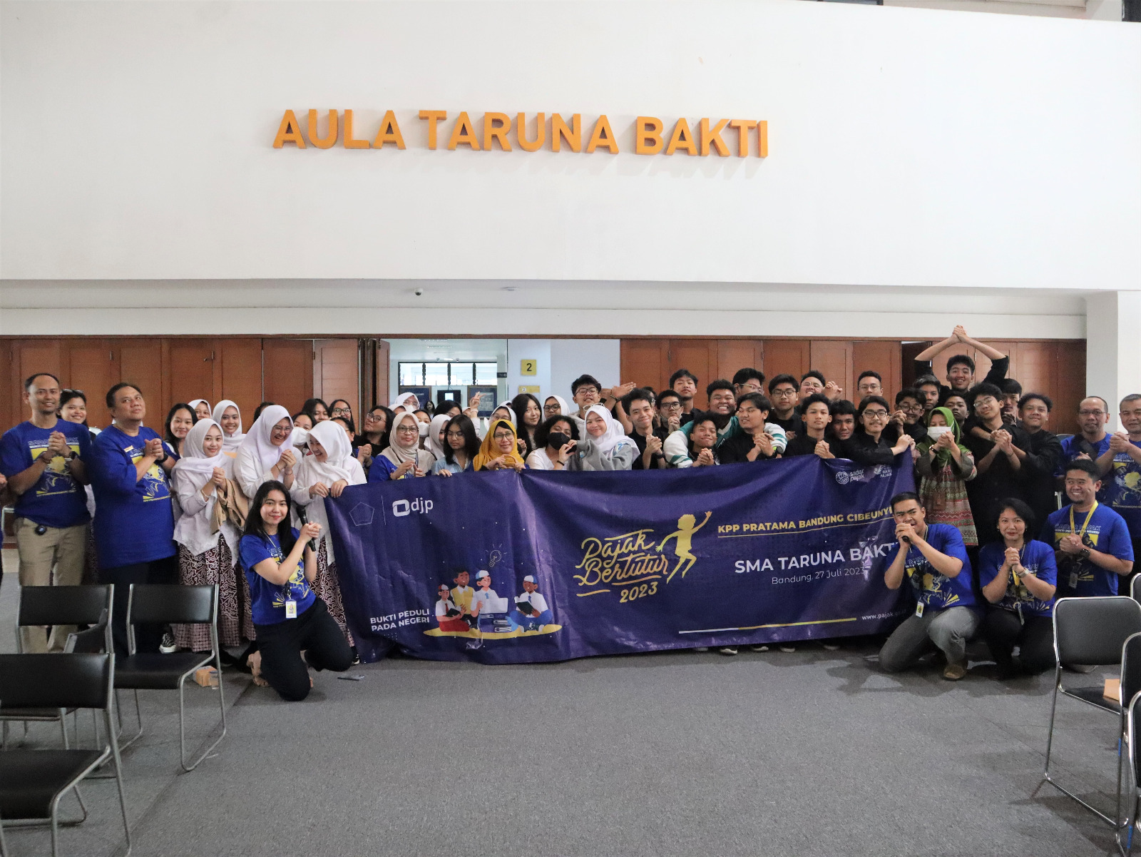 Kantor Pelayanan Pajak (KPP) Pratama Bandung Cibeunying melaksanakan kegiatan Pajak Bertutur Tahun 2023 dengan tema “Sadar Pajak, Bukti Peduli Pada Negeri” di SMA Taruna Bakti Bandung, Jalan L.L.R.E Martadinata no. 52 Kota Bandung, (Kamis, 27/7).