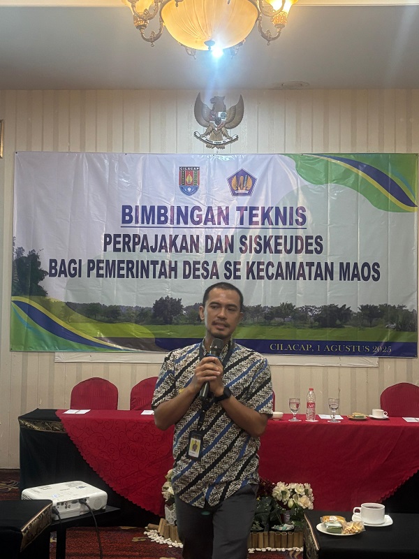 Kantor Pelayanan Pajak (KPP) Pratama Cilacap menghadiri kegiatan Bimbingan Teknis (Bimtek) Kewajiban Perpajakan bagi Instansi Pemerintah Desa melalui Coretax kepada bendahara desa se-Kecamatan Maos, Kabupaten Cilacap. Kegiatan ini bertempat di Ruang Surtikanti Lantai 5 Hotel Sindoro, Kabupaten Cilacap (Jumat, 1/8).