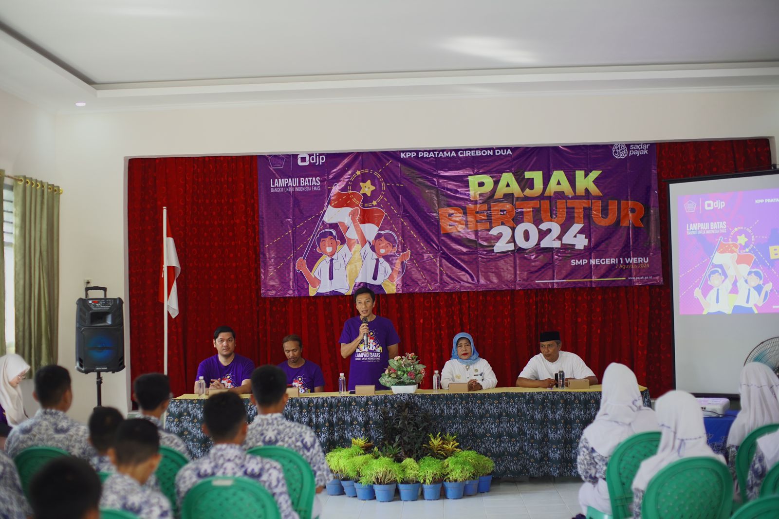 Kantor Pelayanan Pajak (KPP) Pratama Cirebon Dua mengadakan edukasi perpajakan dalam rangkaian Pajak Bertutur 2024 di Sekolah Menengah Pertama (SMP) Negeri 1 Weru Kabupaten Cirebon, Rabu (7/8). Kegiatan tersebut merupakan salah satu bentuk kepedulian dan inisiatif KPP Pratama Cirebon Dua dalam membentuk generasi muda yang sadar pajak. Kegiatan yang berlangsung mulai pukul 08.00 sampai dengan 12.00 WIB bertempat di Aula SMP Negeri 1 Weru, Kabupaten Cirebon.