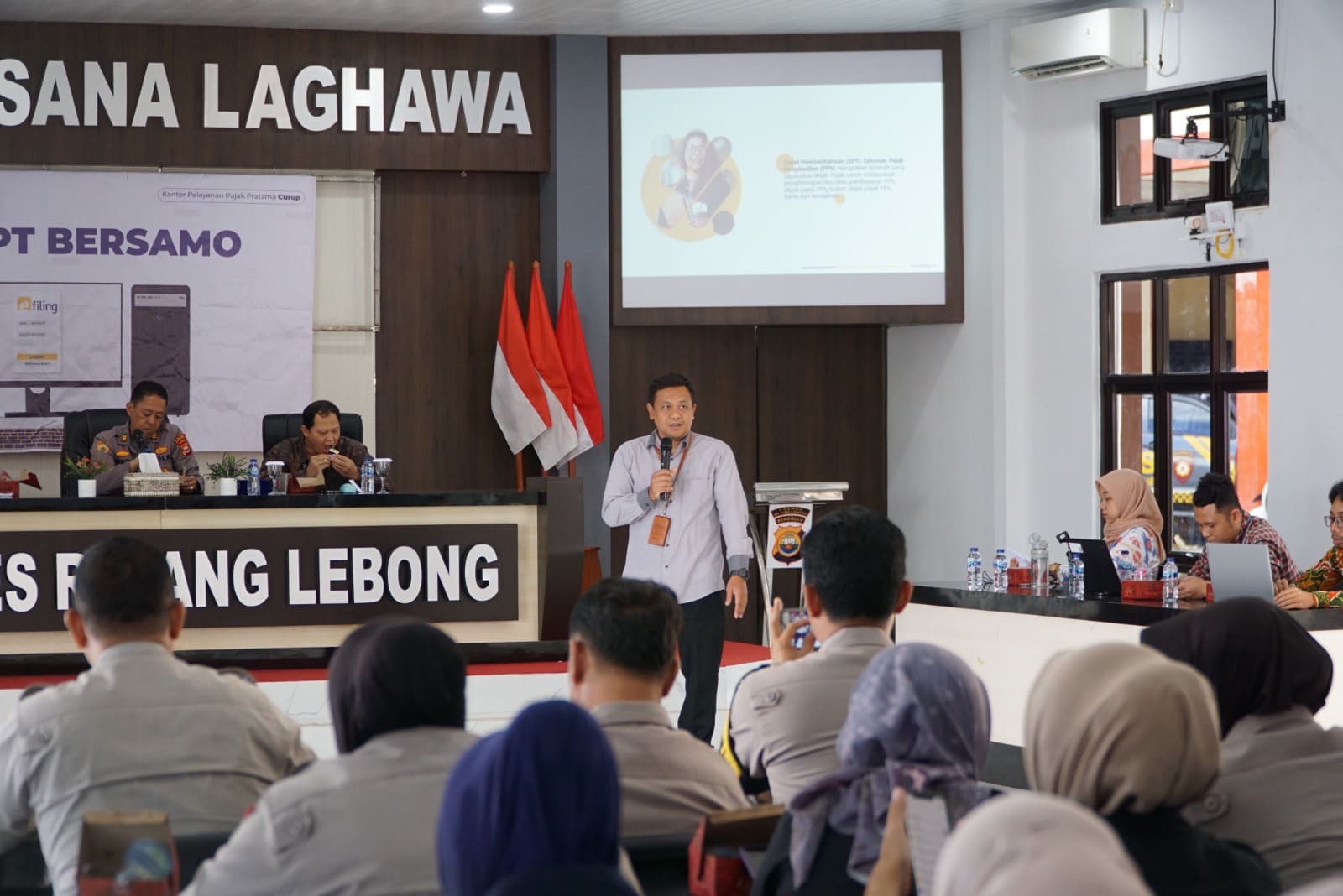 Kantor Pelayanan Pajak (KPP) Pratama Curup menyelenggarakan Asistensi Pelaporan Surat Pemberitauhan (SPT) Tahunan PPh Orang Pribadi dan Pemadanan Nomor Induk Kependudukan (NIK) menjadi Nomor Pokok Wajib Pajak (NPWP) bersama Kepolisian Resor (Polres) Rejang Lebong bertempat di Aula Polres Rejang Lebong, Bengkulu (Selasa,6/2).