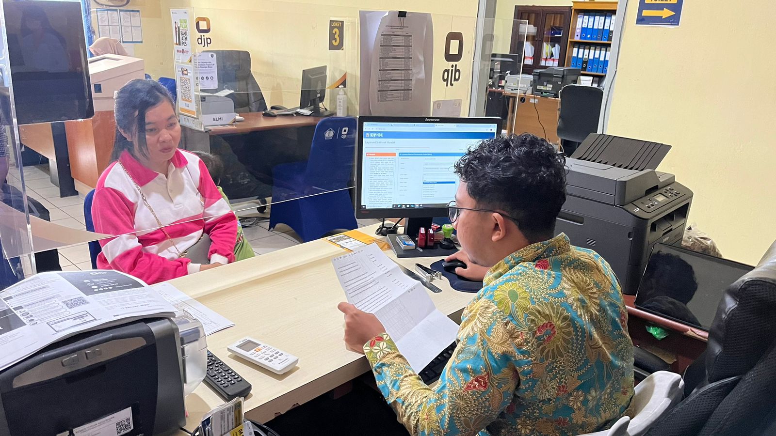 “Baik Ibu, saya cek dulu detail besaran pajaknya berdasarkan catatan yang Ibu bawa untuk kemudian kita buat kode billing ini,” terang Satriawan.