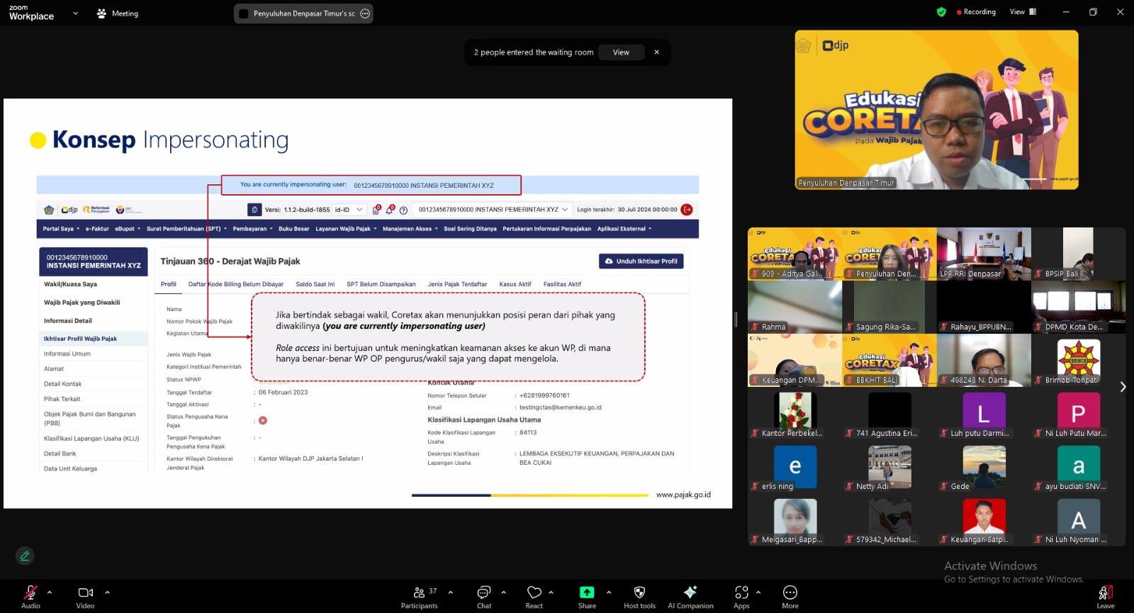 Kantor Pelayanan Pajak (KPP) Pratama Denpasar Timur melaksanakan Edukasi Coretax Tahap II kepada instansi pemerintah yang dilaksanakan secara daring melalui aplikasi Zoom Meeting di Kota Denpasar (Senin, 2/12).