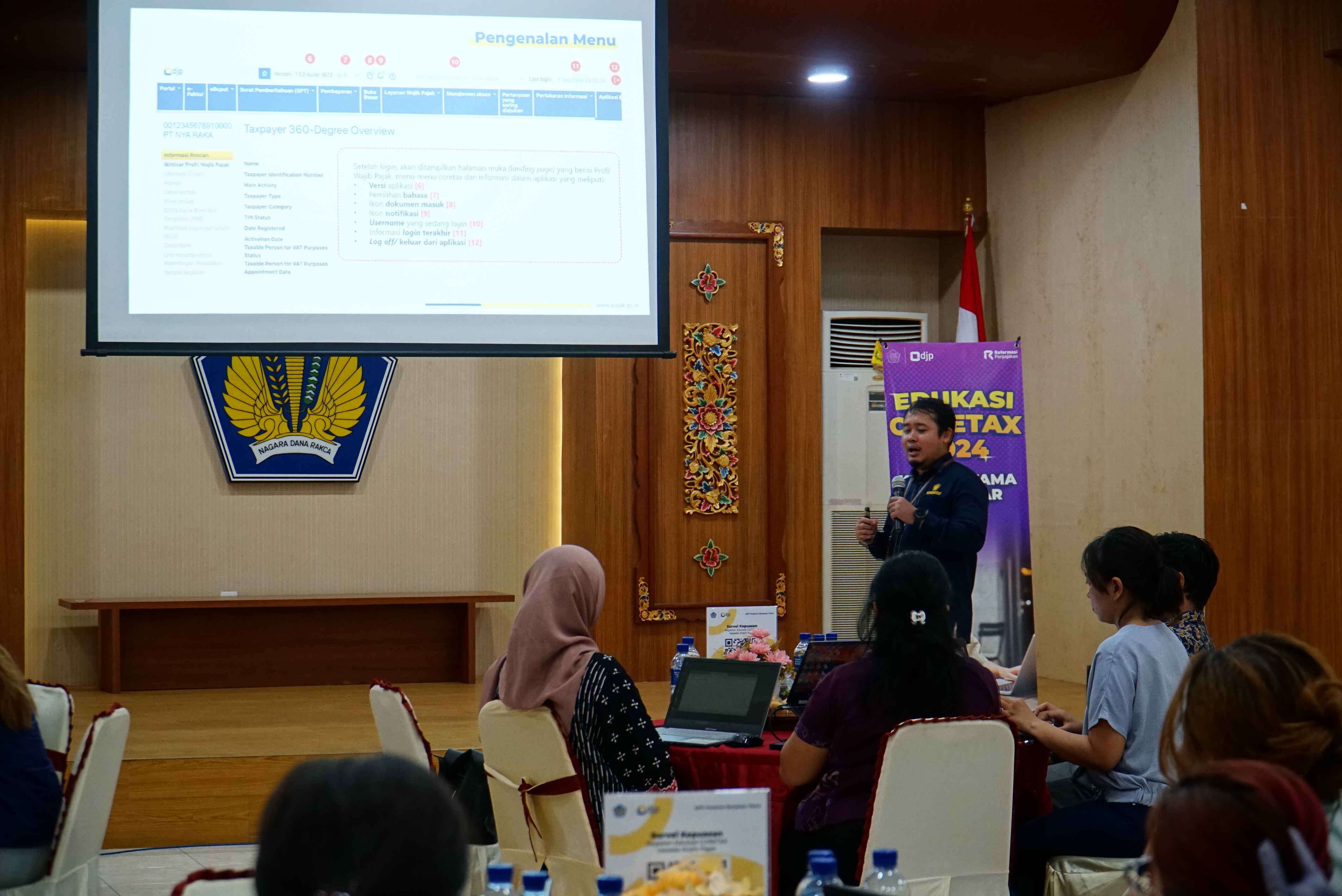 Kantor Pelayanan Pajak (KPP) Pratama Denpasar Timur melaksanakan kegiatan edukasi Coretax kepada wajib pajak di Aula Gedung Keuangan Negara II Denpasar (Rabu, 4/9).
