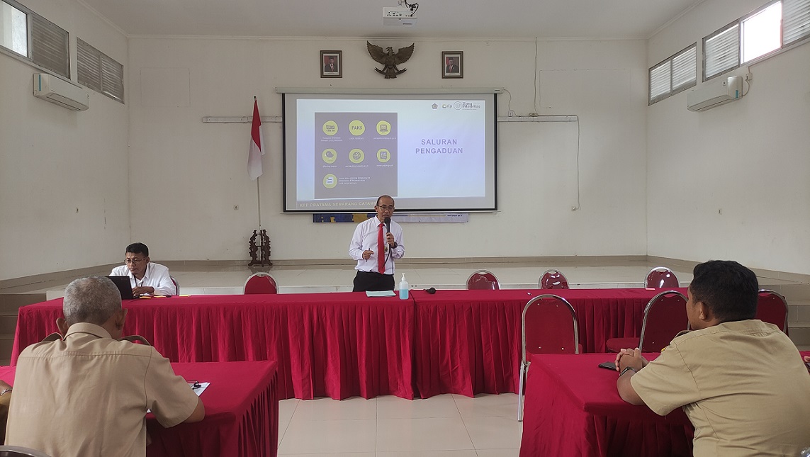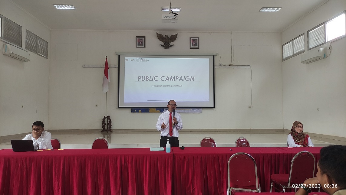 Kantor Pelayanan Pajak (KPP) Pratama Semarang Gayamsari mengadakan kampanye publik ke seluruh Aparatur Sipil Negara (ASN) Kecamatan Pedurungan di Aula Kecamatan Pedurungan Kota Semarang (Senin, 27/2). Kegiatan ini terdiri dari sosialisasi sistem pengendalian intern pemerintah dan sosialisasi sarana pengaduan. Kampanye publik ini berisikan materi sosialisasi oleh Plh. Kepala KPP Pratama Semarang Gayamsari Sugeng Rachwono.
