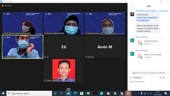 Kantor Pelayanan Pajak (KPP) Pratama Jakarta Pademangan mengadakan kelas pajak Program Pengungkapan Sukarela (PPS) (Rabu,19/1). Kegiatan tersebut diselenggarakan melalui Zoom Meeting di ruang penyuluh KPP Pratama Jakarta Pademangan.