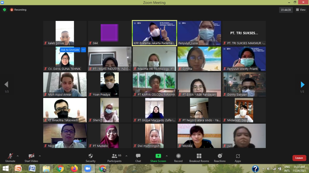 Kantor Pelayanan Pajak (KPP) Pratama Jakarta Pademangan mengadakan kelas pajak yang membahas mengnai Undang-Undang Harmonisasi Perpajakan (UU HPP) melalui Zoom Meeting di ruang rapat KPP Pratama Jakarta Pademangan (Selasa, 24/11). Kelas pajak dihadiri oleh 70 Wajib Pajak Orang Pribadi dan Wajib Pajak Badan.