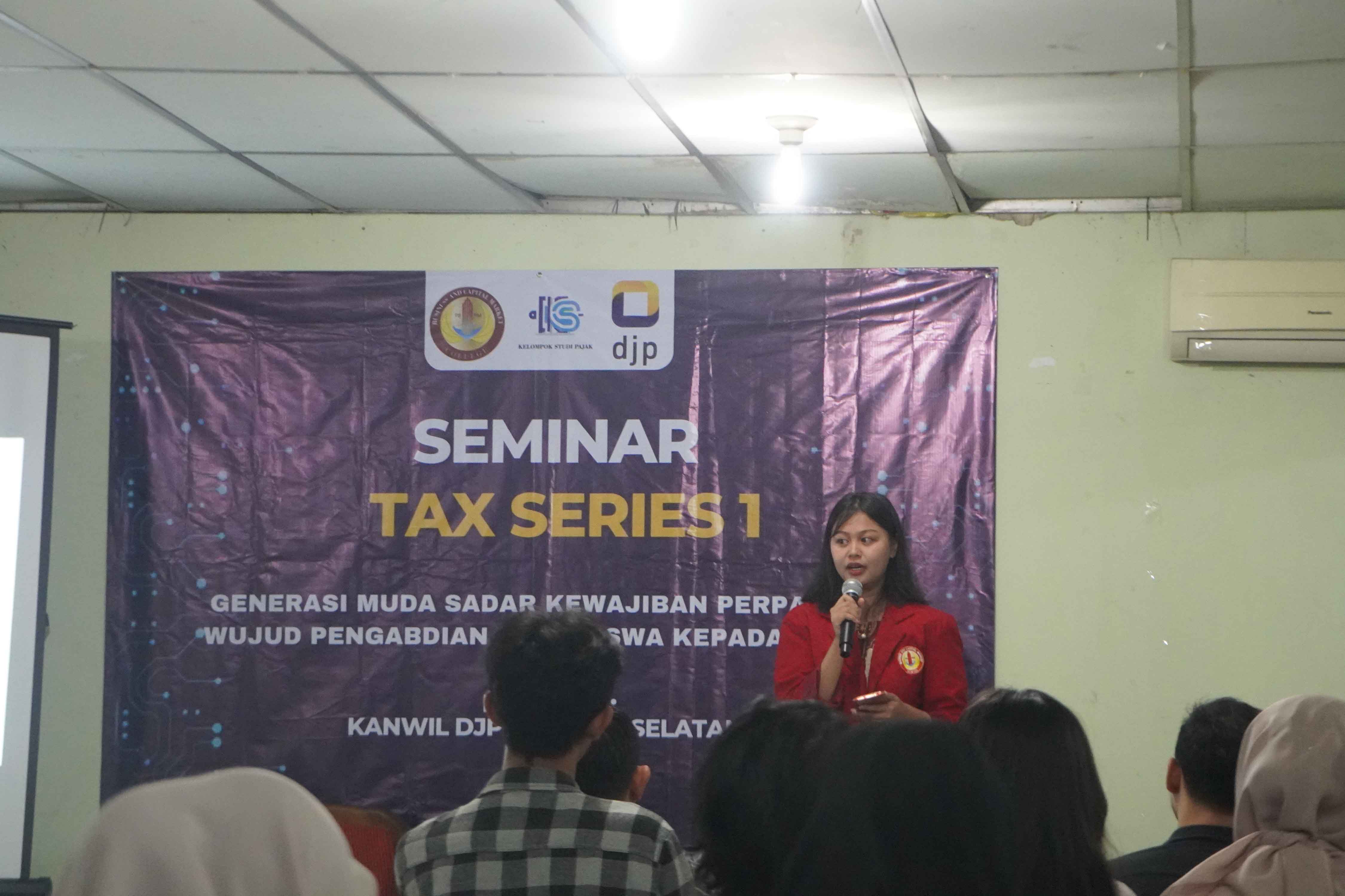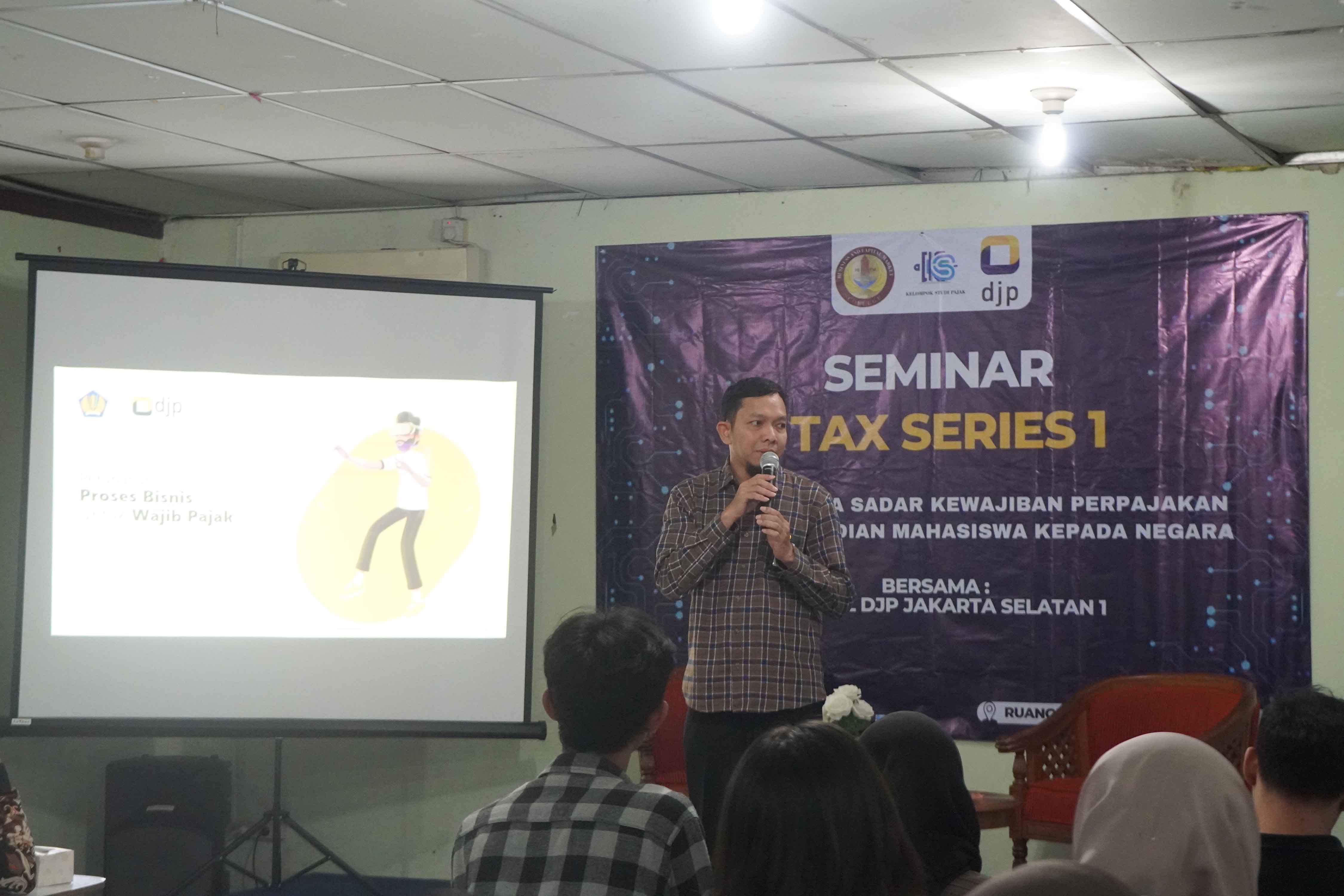Materi seminar disampaikan oleh Ari Widodo, Penyuluh Pajak Ahli Muda Kanwil DJP Jakarta Selatan I. Materi diawali dengan membahas mengenai kesadaran pajak bagi generasi muda. Dengan memahami definisi,manfaat, dan proses pengenaan pajak diharapkan generasi muda sadar pentingnya peran pajak bagi negara. Pajak yang dikumpulkan akan didistribusikan untuk mendanai berbagai kebutuhan negara yang diatur dalam APBN.