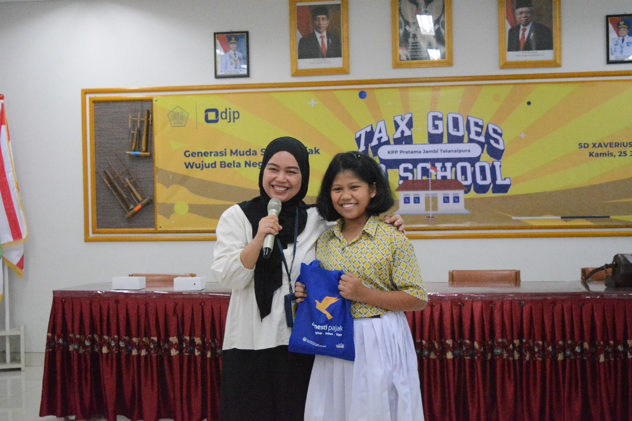 Kantor Pelayanan Pajak (KPP) Pratama Jambi Telanaipura bersama dengan Sekolah Dasar (SD) Xaverius 1 Jambi mengadakan kegiatan Tax Goes to School (TGTS) dengan tema "Generasi Muda Sadar Pajak, Wujud Bela Negara" bertempat di Ruang Multimedia SD Xaverius 1 Jambi (Kamis, 25/1). Kegiatan yang diikuti oleh siswa- siswi kelas V dan VI ini bertujuan untuk memperkenalkan pajak sejak dini kepada siswa-siswi yang merupakan Calon Wajib Pajak.
