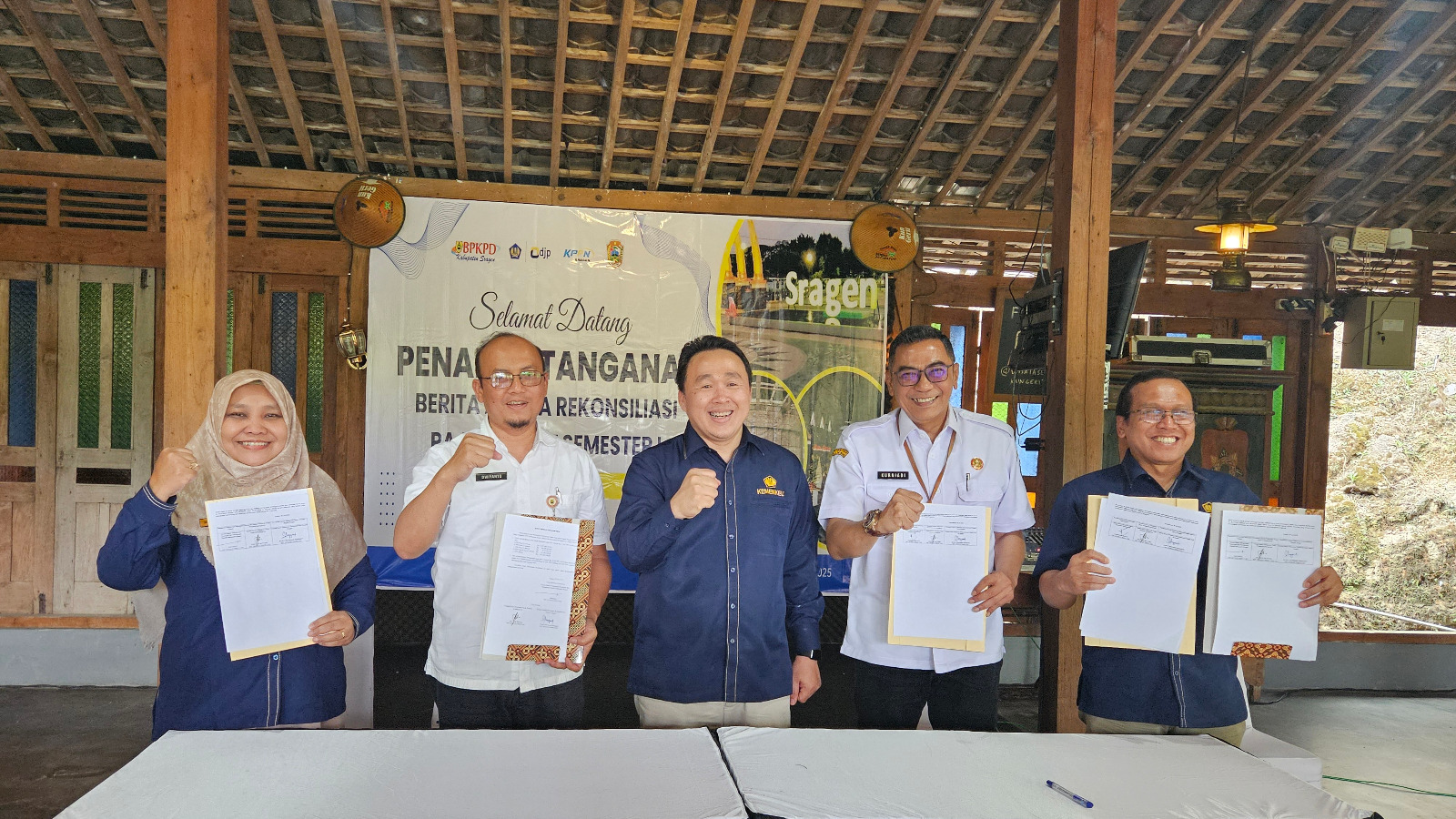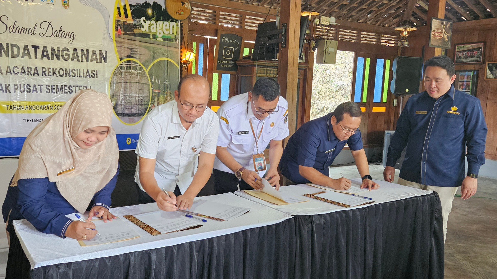 Kantor Pelayanan Pajak (KPP) Pratama Karanganyar bersama Kantor Pelayanan Perbendaharaan Negara (KPPN) Sragen, Pemerintah Kabupaten Karanganyar, dan Pemerintah Kabupaten Sragen melaksanakan kegiatan Penandatanganan Berita Acara Rekonsiliasi (BAR) Penyetoran Pajak Pusat Semester I Tahun 2025.