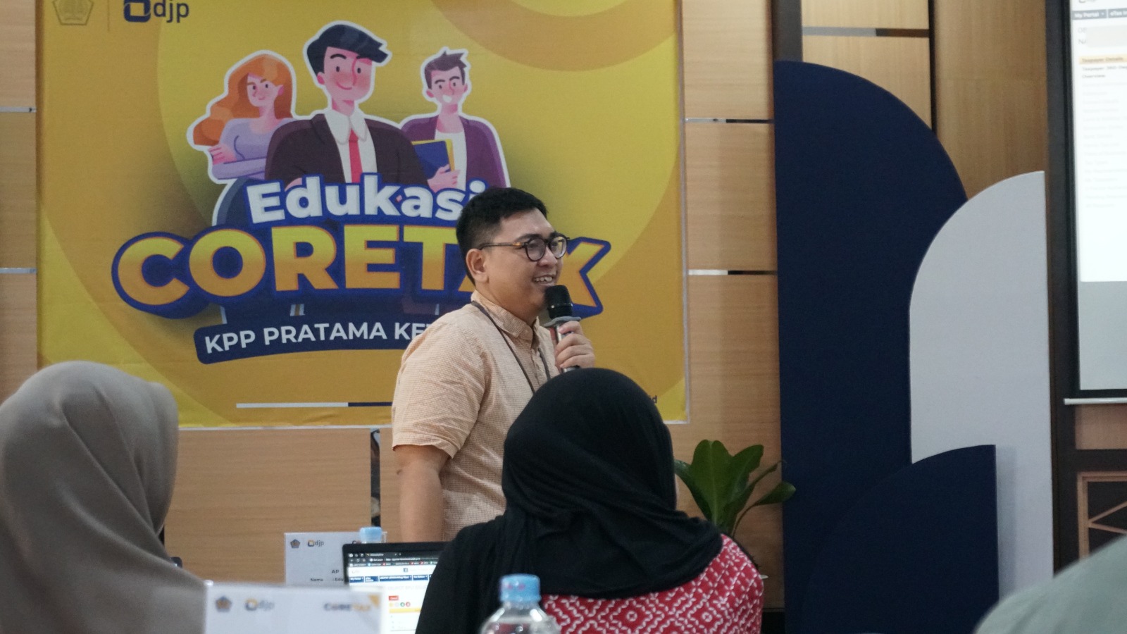 Tim Edukasi Eksternal dan Change Agent dari KPP Pratama Ketapang memulai materi dengan menjelaskan fitur-fitur yang ada, kemudian menjelaskan proses yang bisa dijalankan di aplikasi Coretax mulai dari proses penunjukan kuasa wajib pajak, pembuatan faktur pajak, deposit pajak, pembuatan e-Bupot, pelaporan SPT Masa Unifikasi hingga SPT Tahunan.