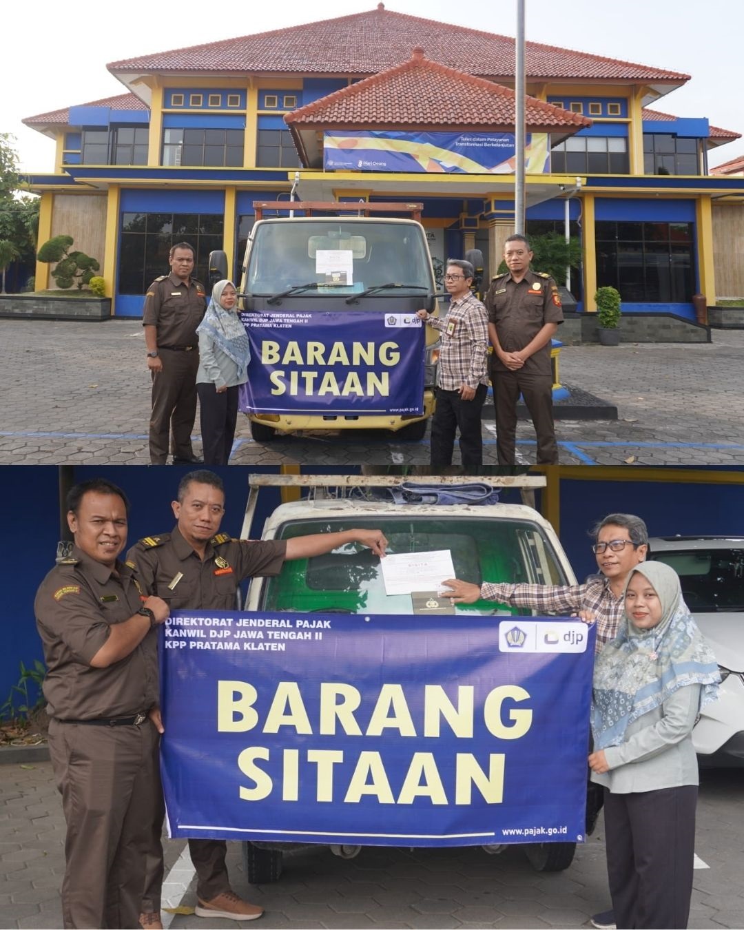 Kantor Pelayanan Pajak (KPP) Pratama Klaten kembali mengambil langkah tegas dengan menyita aset milik warga berinisial H yang menunggak pajak, di Kabupaten Klaten. Melalui Jurusita Pajak Negara (JSPN), Pajak Klaten berhasil mengamankan dua unit kendaraan milik H berupa satu mobil pick-up dan satu truk, dengan nilai total taksiran mencapai Rp 270 juta pada Kamis (24/10).