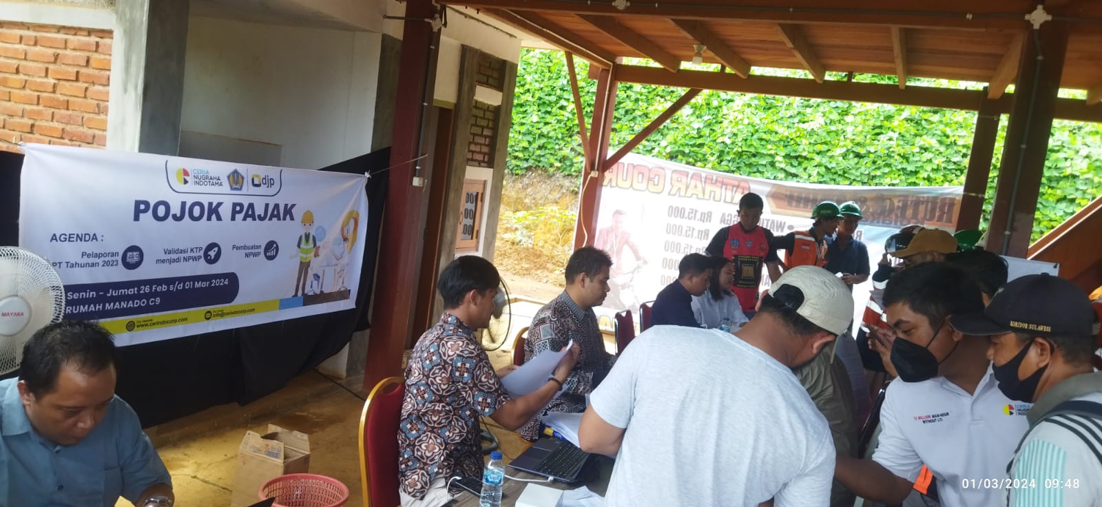 Kantor Pelayanan Pajak (KPP) Pratama Kolaka membuka layanan Pojok Pajak di PT Ceria Nugraha Indotama Kabupaten Kolaka (Jumat,1/3). Pojok Pajak ini berlangsung selama lima hari sejak tanggal 26 Februari sampai dengan 1 Maret 2024 mulai pukul 08.00 sampai dengan 17.00 WITA.