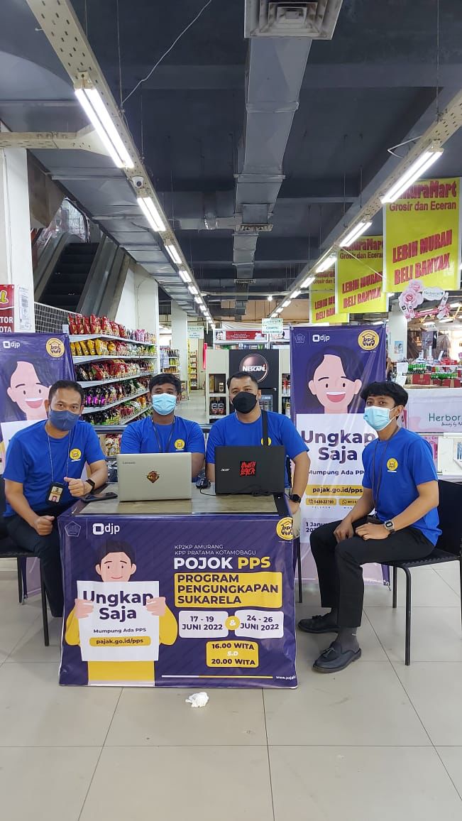 Kantor Pelayanan Pajak (KPP) Pratama Kotamobagu dan Kantor Pelayanan, Penyuluhan, dan Konsultasi Perpajakan (KP2KP) selaku unit vertikal Direktorat Jenderal Pajak (DJP) menyediakan Pojok Pajak Program Pengungkapan Sukarela (PPS) bagi masyarakat Kota Kotamobagu dan Kabupaten Minahasa Selatan. Kegiatan tersebut dilakukan di sejumlah titik stategis dan ruang publik yaitu Paris Superstore di Kotamobagu dan Sakura Mart di Amurang.