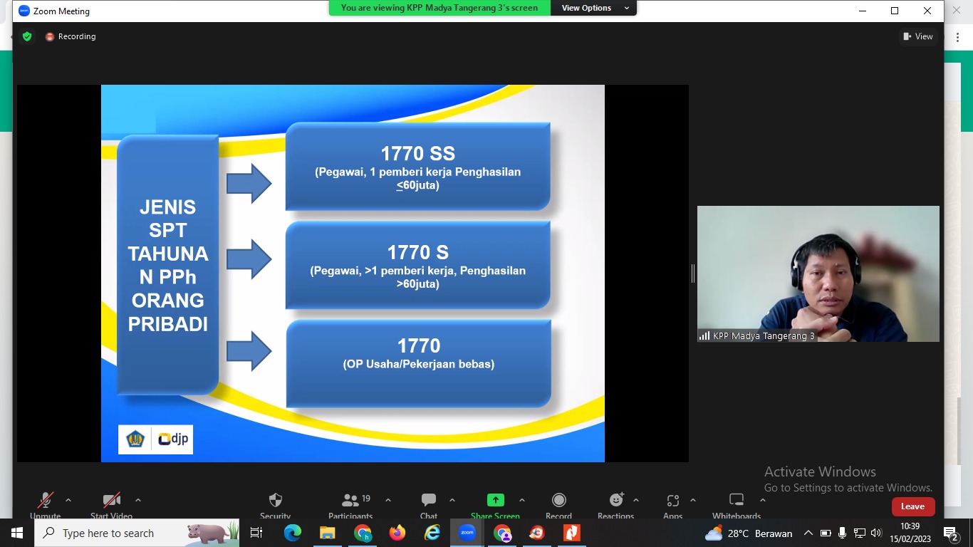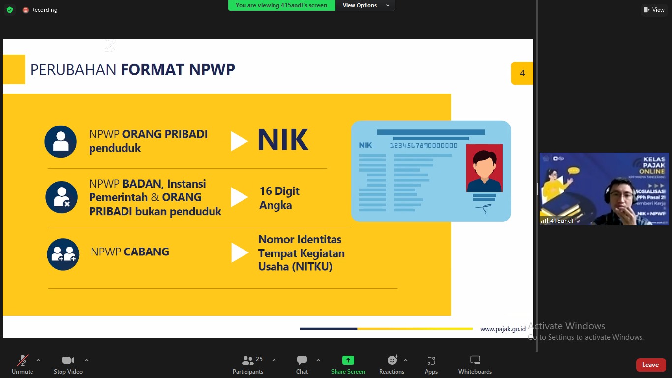 Tim Penyuluh Kantor Pelayanan Pajak (KPP) Madya Tangerang mengimbau wajib pajak untuk melakukan pemadanan NIK menjadi NPWP melalui sosialisasi secara online melalui aplikasi Zoom, langsung dari KPP Madya Tangerang, Kota Tangerang (Rabu, 15/2).