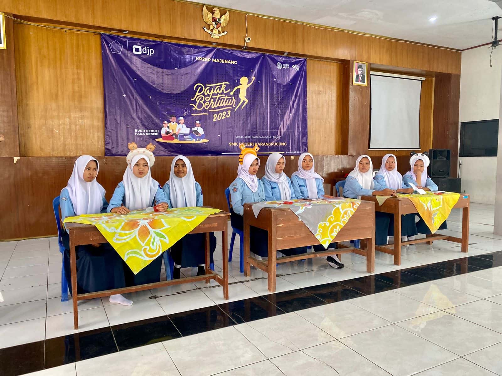 Kantor Pelayanan, Penyuluhan, dan Konsultasi Perpajakan (KP2KP) Majenang menyelenggarakan kegiatan Pajak Bertutur tahun 2023 di Sekolah Menengah Kejuruan Negeri (SMKN) Karangpucung (Kamis, 27/7). Kegiatan diikuti oleh 106 siswa dan siswi yang berasal dari jurusan Akuntansi dan Keuangan Lembaga (AKL). Tema yang diangkat pada kegiatan pajak bertutur 2023 adalah “Sadar Pajak Bukti Peduli Pada Negeri”.