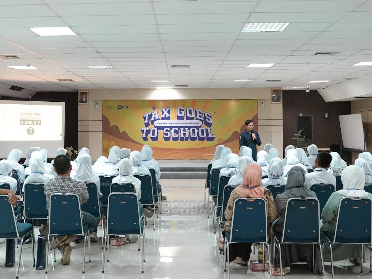 Kantor Pelayanan Pajak (KPP) Pratama Makassar Selatan menerima kunjungan siswa-siswi Sekolah Menengah Kejuruan Negeri (SMKN) 3 Pinrang di Kota Makassar (Kamis, 6/7). Kunjungan tersebut merupakan rangkaian dari kegiatan Tax Goes To School (TGTS) KPP Pratama Makassar Selatan yang bertujuan untuk menumbuhkan dan meningkatkan kesadaran pajak sejak dini.