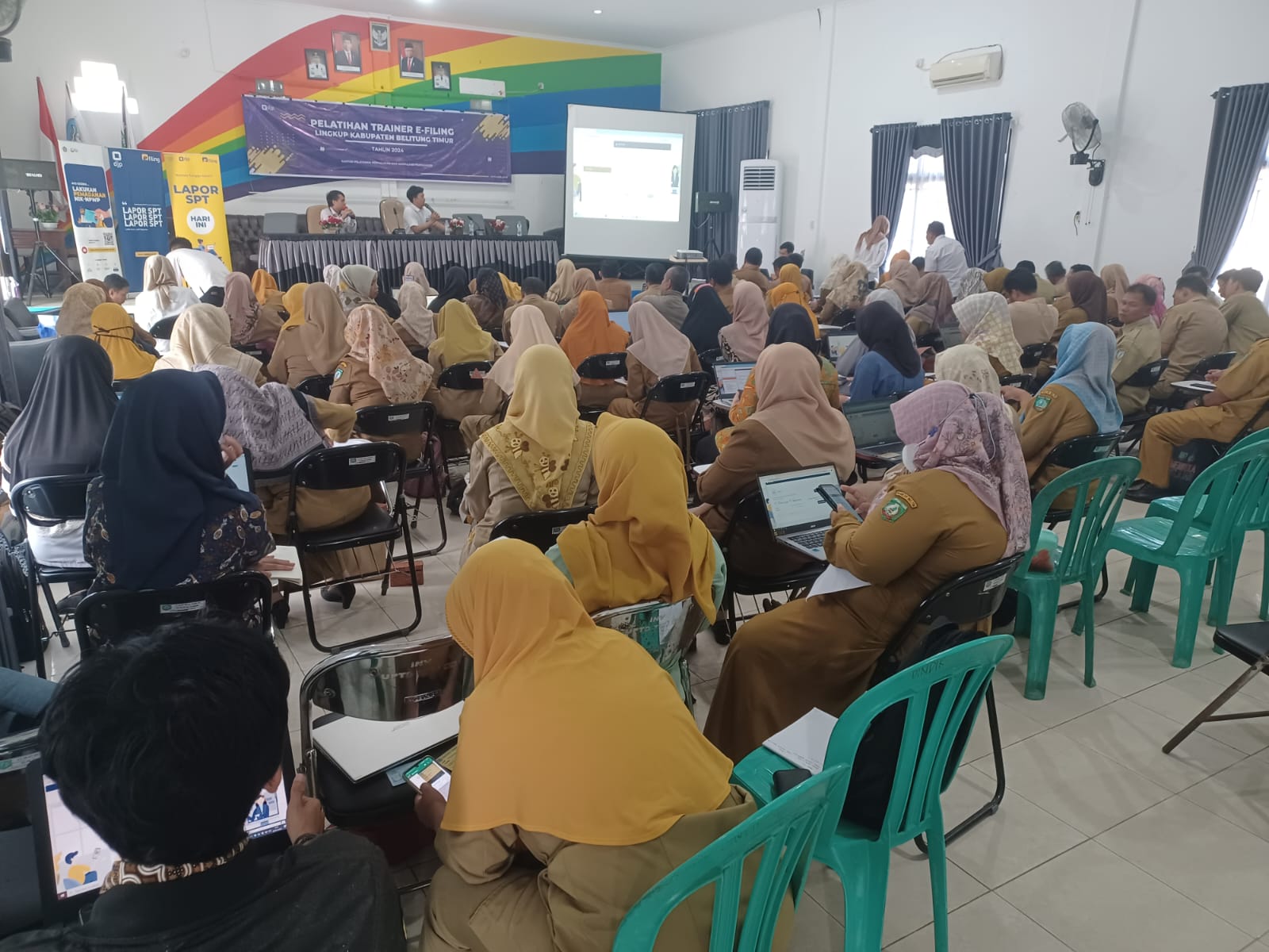 Kantor Pelayanan, Penyuluhan, dan Konsultasi Perpajakan (KP2KP) Manggar bersama Dinas Pendidikan Kabupaten Belitung Timur Manggar menggelar kegiatan E-Filing Mastery (Selasa, 23/1). Acara yang berlangsung pada tanggal 22-23 Januari 2024 ini bertujuan memberikan pengajaran tentang cara pengisian e-Filing kepada perwakilan setiap sekolah di Belitung Timur. Hal ini diharapkan dapat meningkatkan pemahaman mereka dalam melakukan pengisian e-Filing dan memungkinkan mereka untuk menjadi pelatih bagi rekannya di tempat kerja masing-masing.