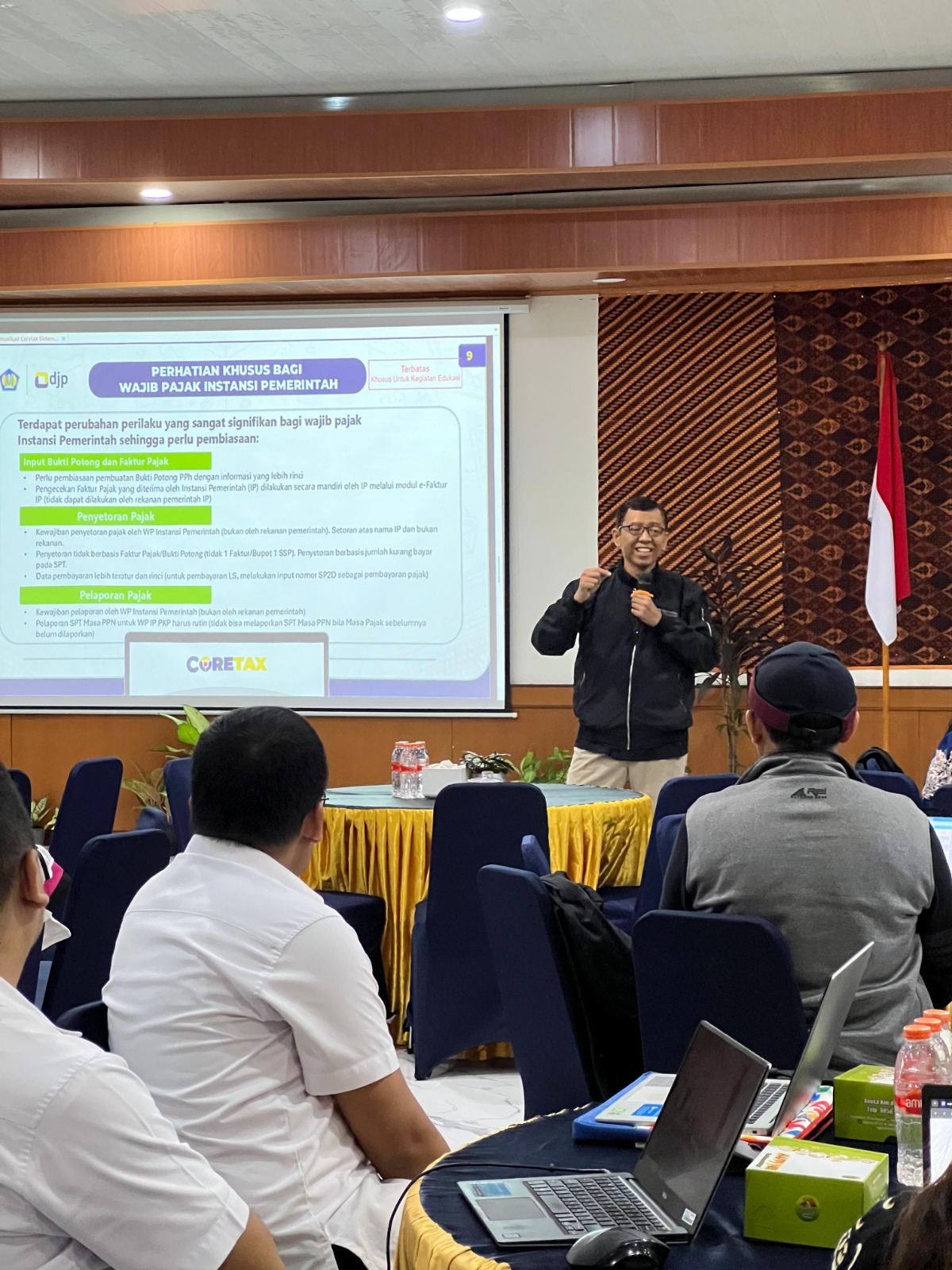 Kantor Pelayanan Pajak (KPP) Pratama Jakarta Menteng Satu mengadakan sosialisasi penggunaan Coretax DJP bagi Wajib Pajak Instansi Pemerintah di wilayah kerja Kelurahan Kebon Sirih. Acara ini berlangsung di Aula Lantai 5 KPP Pratama Jakarta Menteng Satu, Jakarta (Kamis, 6/2).