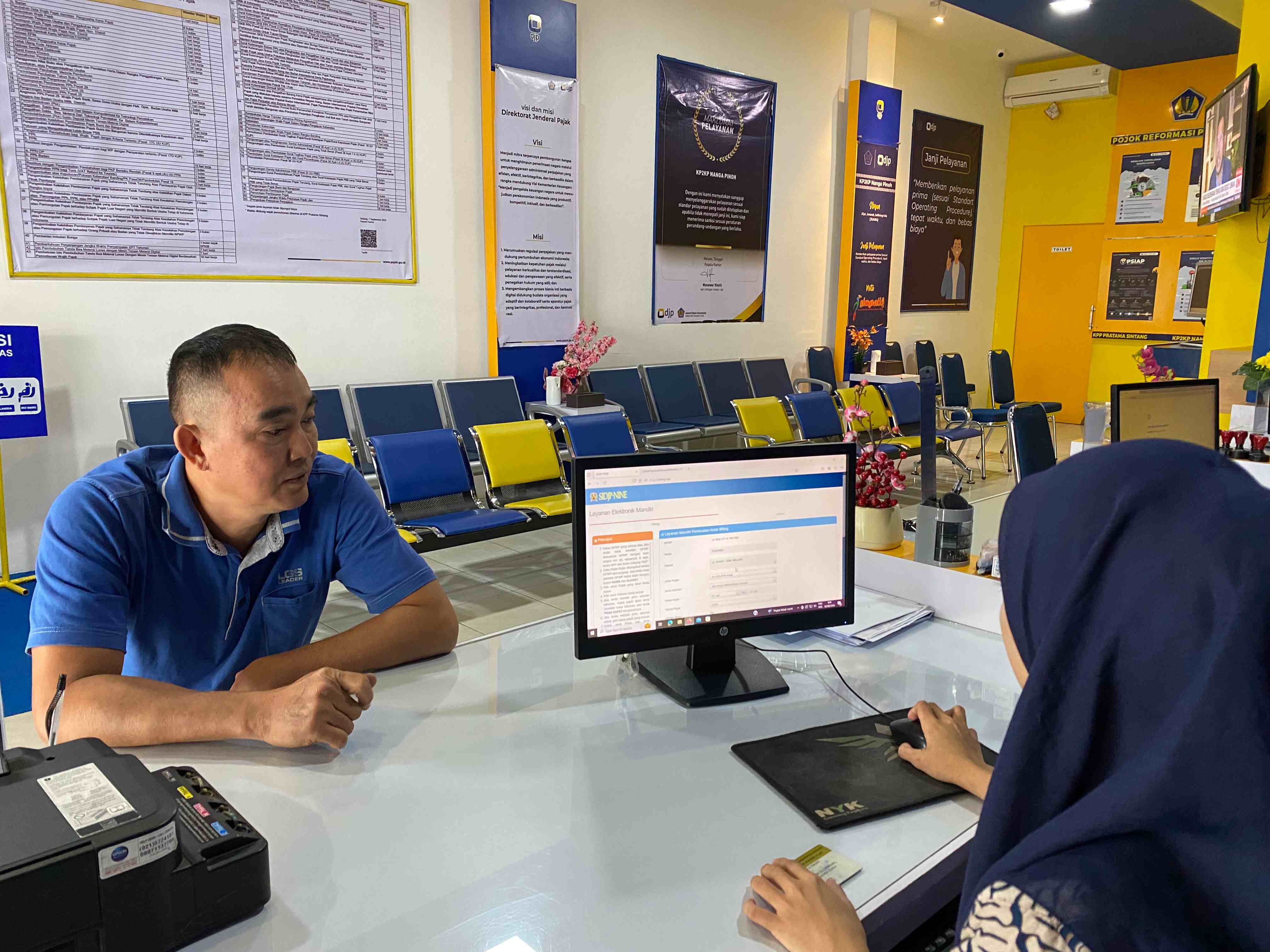 Petugas Kantor Pelayanan, Penyuluhan, dan Konsultasi Perpajakan Nanga Pinoh memberikan sesi asistensi dan konsultasi kepada wajib pajak yang menjalankan usaha mikro, kecil, dan menengah di tempat pelayanan terpadu KP2KP Nanga Pinoh, Kabupaten Melawi (Jumat, 2/8). Diketahui wajib pajak tersebut memiliki usaha toko elektronik keperluan rumah tangga. Wajib pajak tersebut menanyakan apakah masih ada kewajiban pembayaran pajak. Petugas pelayanan kemudian mengecek status pembayaran dan juga pelaporan wajib pajak.