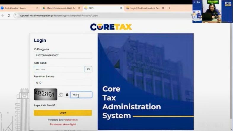 Kantor Pelayanan Pajak (KPP) Pratama Natar menyelenggarakan Webinar Edukasi Coretax secara daring melalui aplikasi Zoom Meeting dengan mengundang Wajib Pajak Instansi Pemerintah Daerah, baik Kabupaten Lampung Selatan maupun Kabupaten Pesawaran (Rabu, 11/12). Webinar ini bertujuan untuk meningkatkan pengetahuan dan wawasan Wajib Pajak Instansi Pemerintah terkait aplikasi Coretax.