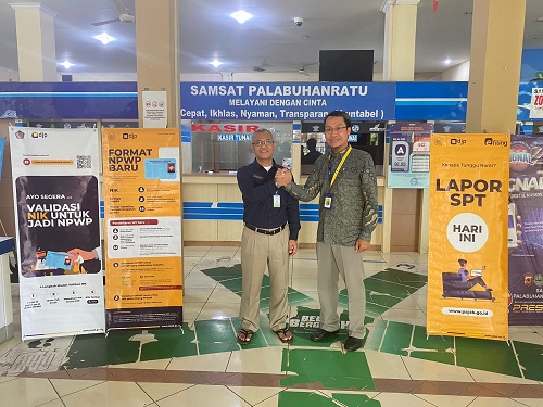 Kantor Pelayanan, Penyuluhan, dan Konsultasi Perpajakan (KP2KP) Pelabuhanratu melakukan kunjungan ke Bank Syariah Indonesia (BSI) Kantor Cabang Pembantu (KCP) Sukabumi Palabuhanratu, Yogya Departement Store Palabuhanratu, dan Kantor Samsat Palabuhanratu di Palabuhanratu, Sukabumi (Selasa, 7/2).