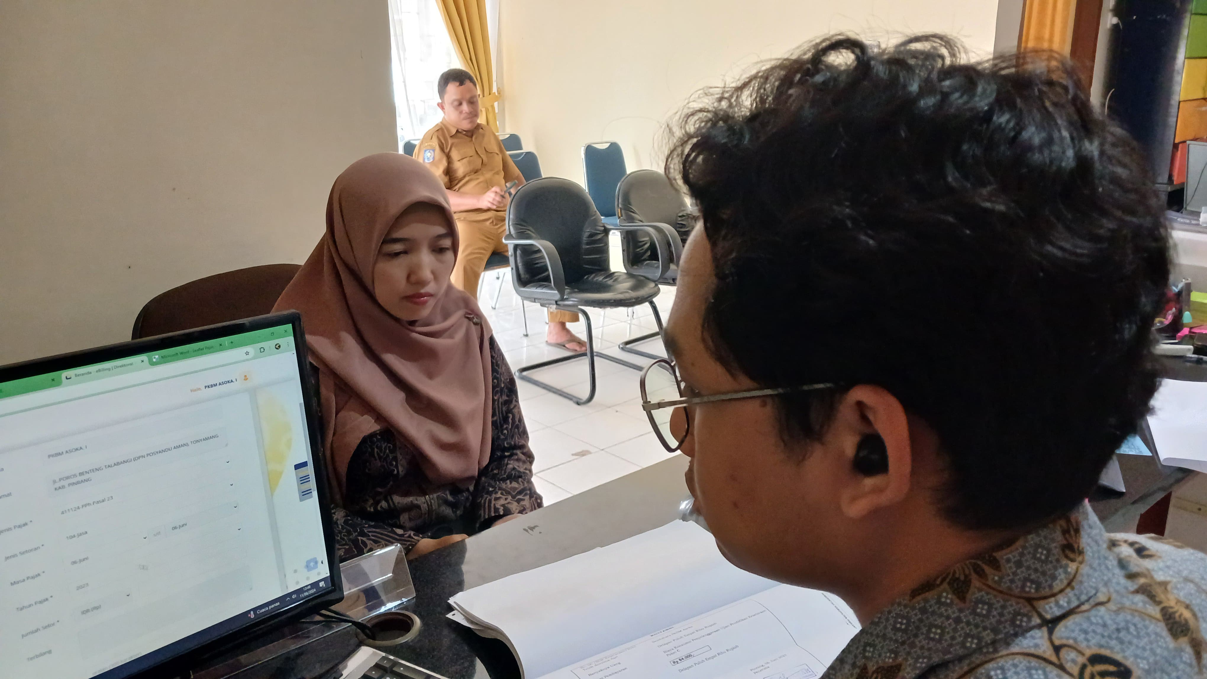 Wajib Pajak Pusat Kegiatan Belajar Masyarakat (PKBM) mendatangi Kantor Pelayanan, Penyuluhan, dan Konsultasi Perpajakan (KP2KP) Pinrang di Jalan Jenderal Sukawati, Kelurahan Macorawalie, Kecamatan Watang Sawitto, Kabupaten Pinrang (Jumat, 7/6). Pengurus PKBM tersebut datang untuk melakukan pembayaran pajak atas transaksi yang telah diaudit oleh Inspektorat Daerah Kabupaten Pinrang.