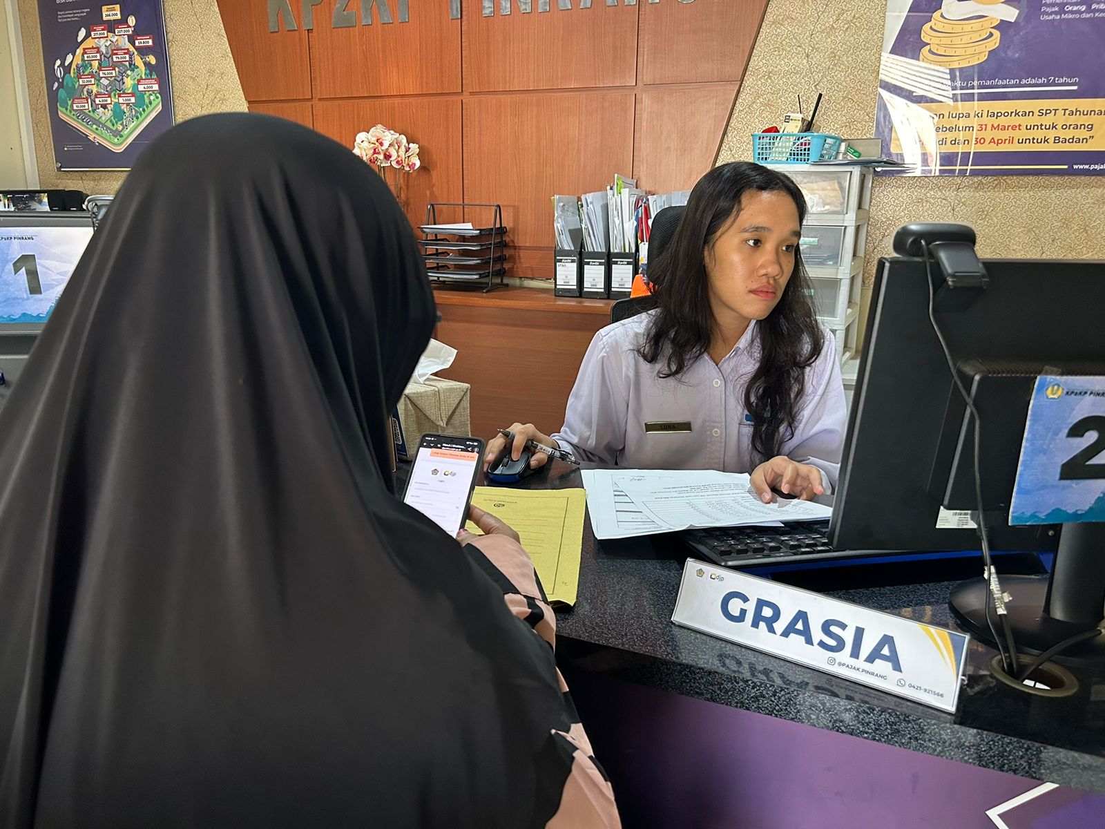 Widya, wajib pajak yang berprofesi sebagai afiliator lokapasar, mengunjungi Kantor Pelayanan, Penyuluhan, dan Konsultasi Perpajakan (KP2KP) Pinrang untuk mencetak kartu Nomor Pokok Wajib Pajak (NPWP) miliknya di Tempat Pelayanan Terpadu (TPT) KP2KP Pinrang (Senin, 28/10).