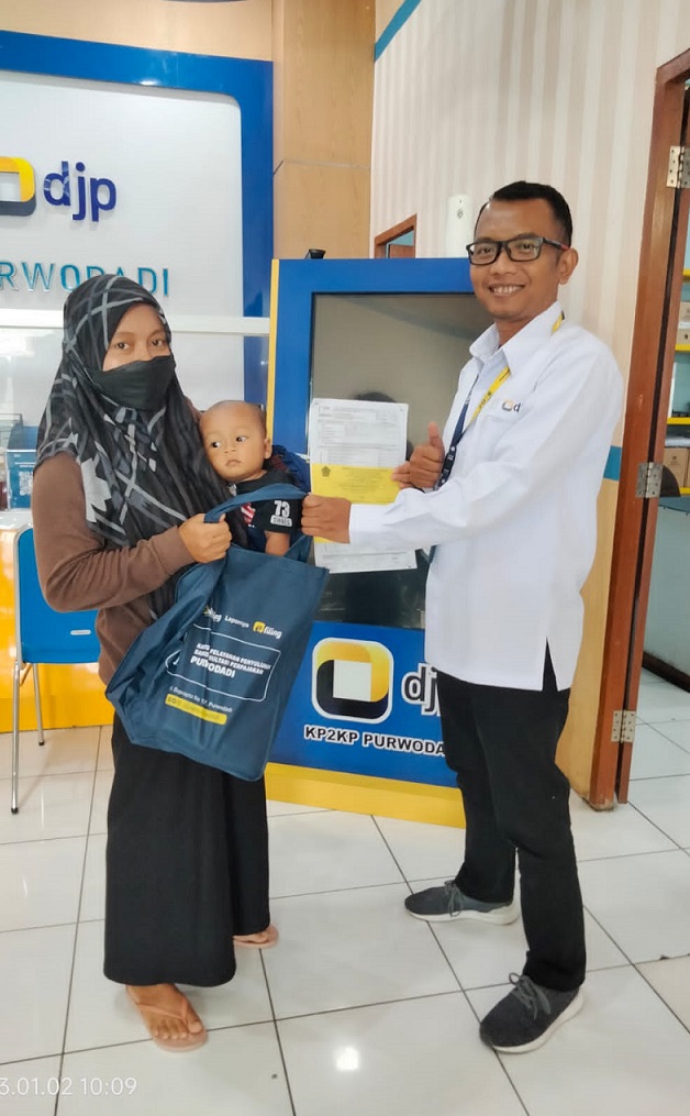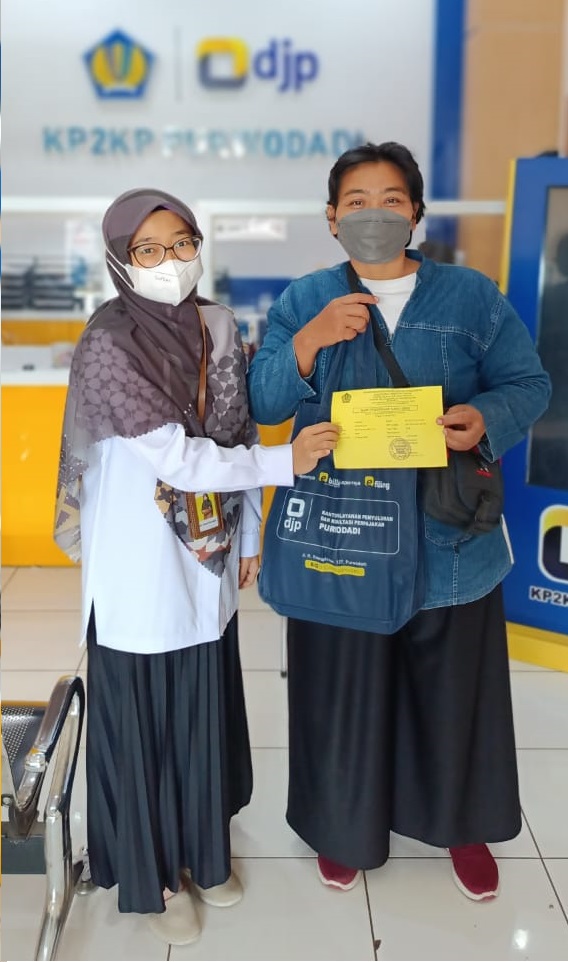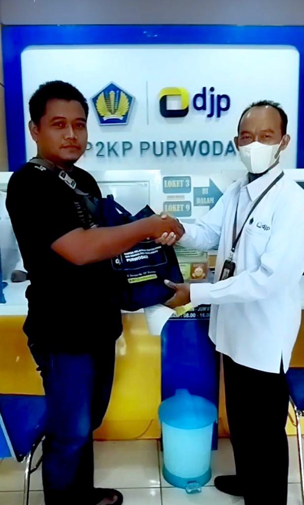 Edy Suswanto, seorang pedagang kelontong di Kabupaten Grobogan menjadi salah satu wajib pajak yang pertama melaporkan SPT Tahunan 2022. Sebelum melaporkan SPT Edy melakukan konsultasi terlebih dahulu dengan petugas terkait apakah usaha yang dijalankan terutang pajak atau tidak. Setelah menyampaikan SPT Tahunan Edy menerima souvenir langsung dari Kepala KP2KP Purwodadi.