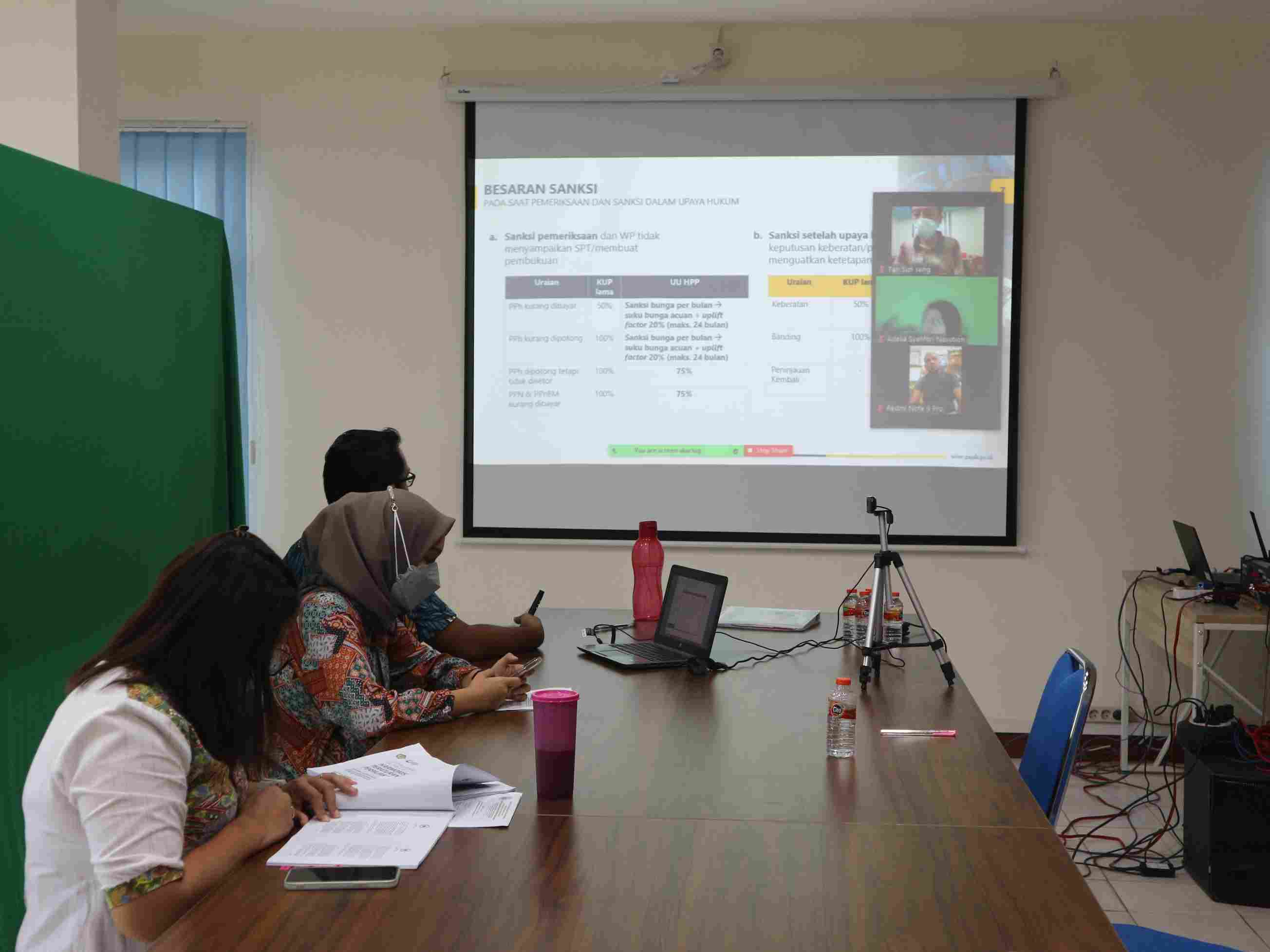 Kantor Pelayanan Pajak (KPP) Pratama Rantau Prapat mengadakan edukasi perpajakan terkait Undang-Undang (UU) Harmonisai Peraturan Perpajakan (HPP) melalui aplikasi Zoom Meeting di Aula KPP Pratama Rantau Prapat di Kabupaten Labuhan Batu, Sumatera Utara (Jumat, 17/12).