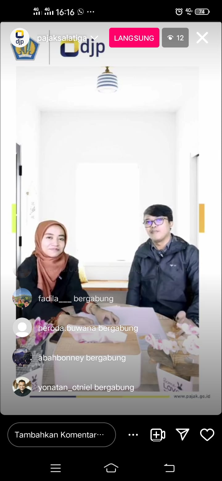 Kantor Pelayanan Pajak (KPP) Pratama Salatiga menyelenggarakan live Instagram melalui akun resmi @PajakSalatiga di Salatiga (Selasa, 27/12).