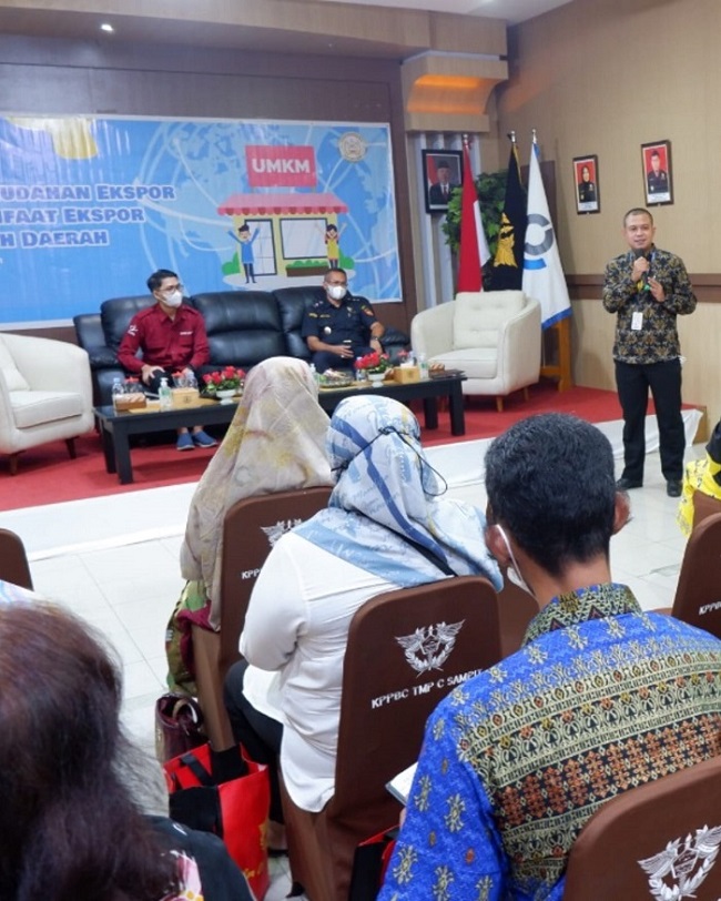 KPP Pratama Sampit dan KP2KP Kasongan menjadi salah satu narasumber dalam Sosialisasi Kemudahan Ekspor UMKM dan Manfaat Ekspor Bagi Pemerintah Daerah di Aula Lantai 3 KPPBC TMP C Sampit (Kamis, 17/3).