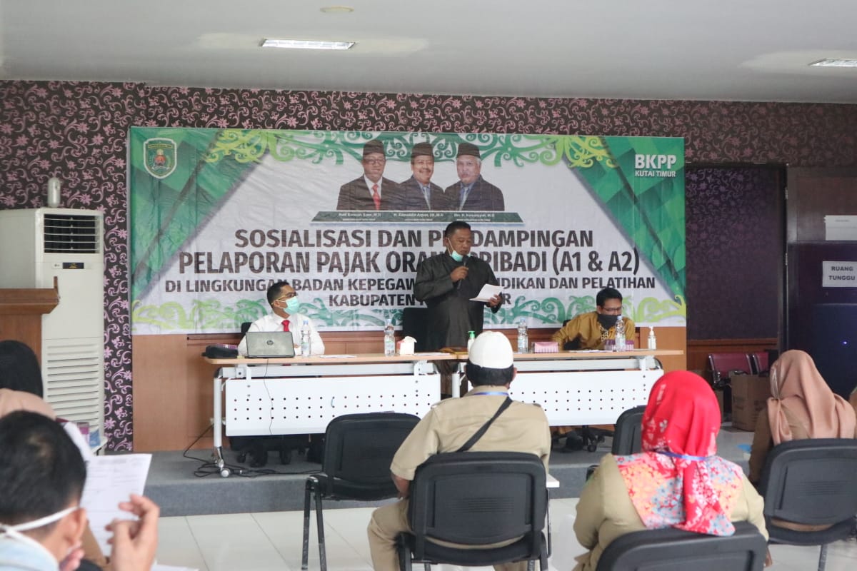 Kepala KP2KP Sangatta Ricky Winanto membuka edukasi ini dan dilanjut oleh pemaparan materi oleh narasumber Account Representative KPP Pratama Bontang. Adapun kegiatan dilakukan mengingat tingkat kepatuhan pelaporan PNS di lingkup kerja perkantoran Kab. Kutai Timur masih rendah dikarenakan ketidaktahuan wajib pajak jika memiliki kewajiban pelaporan SPT Tahunan.